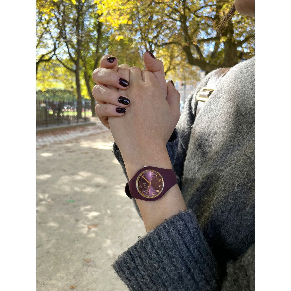 「ICE champagne」は、アイスウォッチの代名詞ともいえるカラフル×シンプルの世界観に、ホリデーの華やぎを添えた新コレクション。中央からインナーリングへと放射状に広がる繊細なエンボスラインが、まるでシャンパンの泡が立ちのぼるようにきらめきます。インデックスや針にはイエローゴールドをあしらい、どの角度から見ても上品な印象に。「かわいいだけじゃない」大人の手もとにしっくり馴染む、アイスウォッチの新しいスタンダードです。ケースとベルトが一体化したマットシリコンのボディは、柔らかく肌に馴染み、見た目以上に軽い着け心地。37mmのスモールプラスサイズはユニセックスで使いやすく、普段使いにも、特別な日のコーデにも自然に溶け込みます。10気圧防水、日本製クォーツムーブメント搭載、2年保証。「かわいいけど、ちゃんとしてる」そんな信頼感が詰まった一本です。