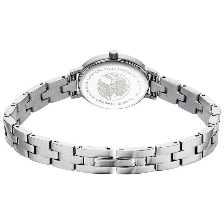 オーバルシェイプに込められた北欧のゆるやかな時間、小さく、薄く、そして洗練されたオーバル型のケースは、手首にそっと寄り添います。主張しすぎず、確かな存在感を放つマザーオブパールの文字盤は、1つとして同じ表情のない光を放ち、華奢なリンクストラップは手首を美しく引き立てます。BERINGでは最も小さな20mmのケースに、幅8mmのステンレスリンクストラップを合わせました。自然の美しさと、機能的なデザインが溶け合うBERINGの新たなクラシックコレクションです。