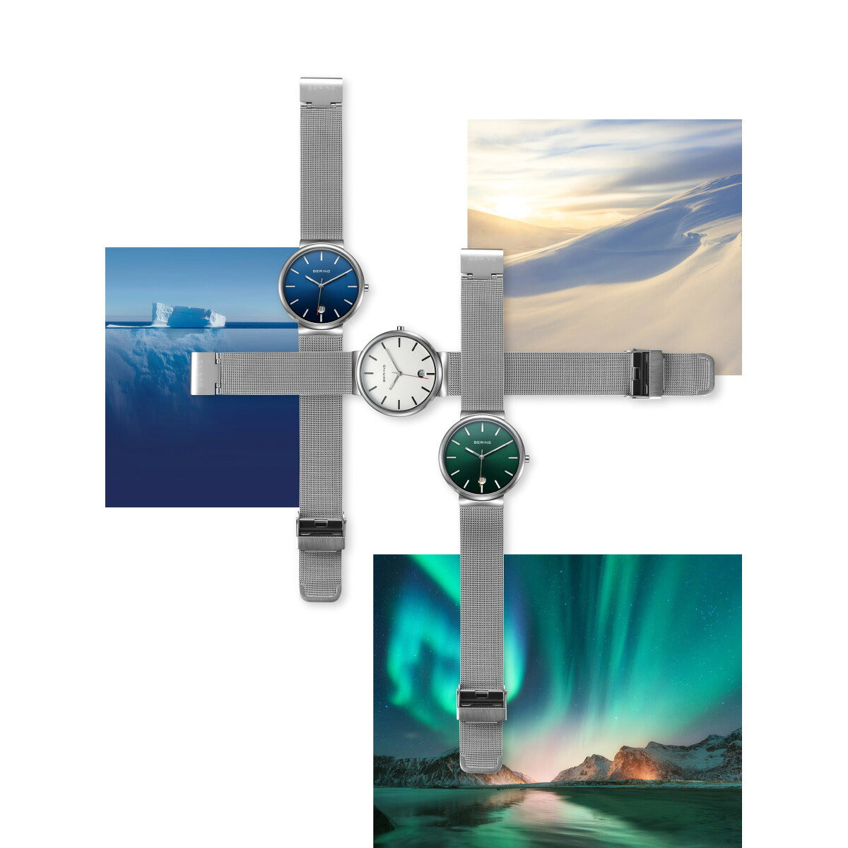 トラディショナルな北欧デザインに、BERINGの哲学と素材への拘りを掛け合わせた生まれたClassic Scandinavian(クラシックスカンジナビアン)シリーズ。ミニマルで実用的なデンマークデザインが、硬質感のあるシルバーケースと、鮮やかなカラーリングのコンビで新鮮でクリーンな印象に仕上がりました。最もシンプルなホワイトダイヤルにはデンマークカラーのレッドが秒針のアクセントになっています。35mmサイズのケースは性別を問わず着用することができ、通気性と腕へのフィット感が心地よいメッシュストラップはこれからの季節にも最適です。