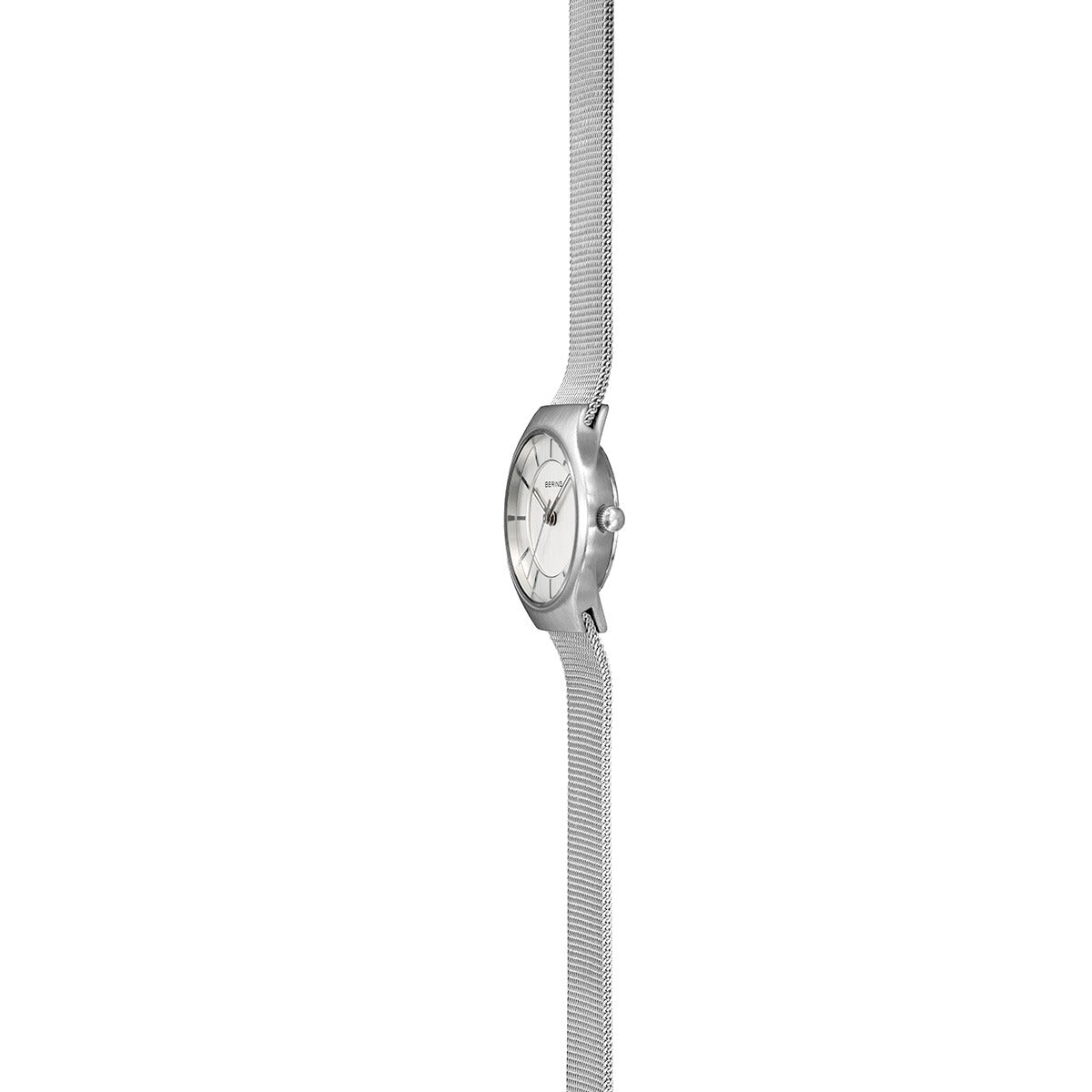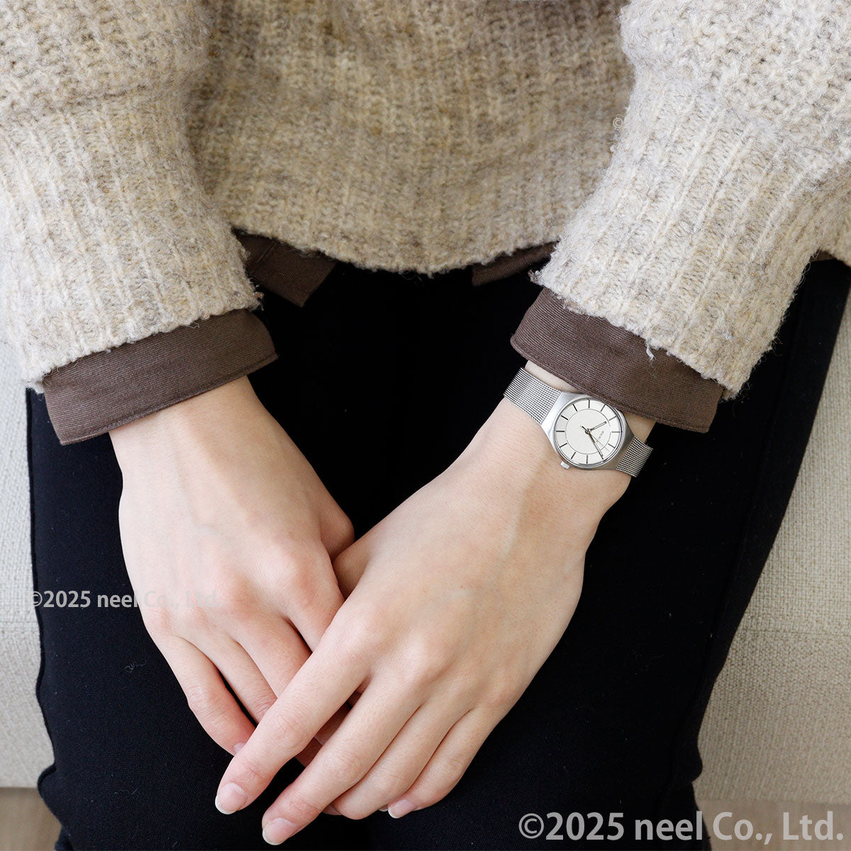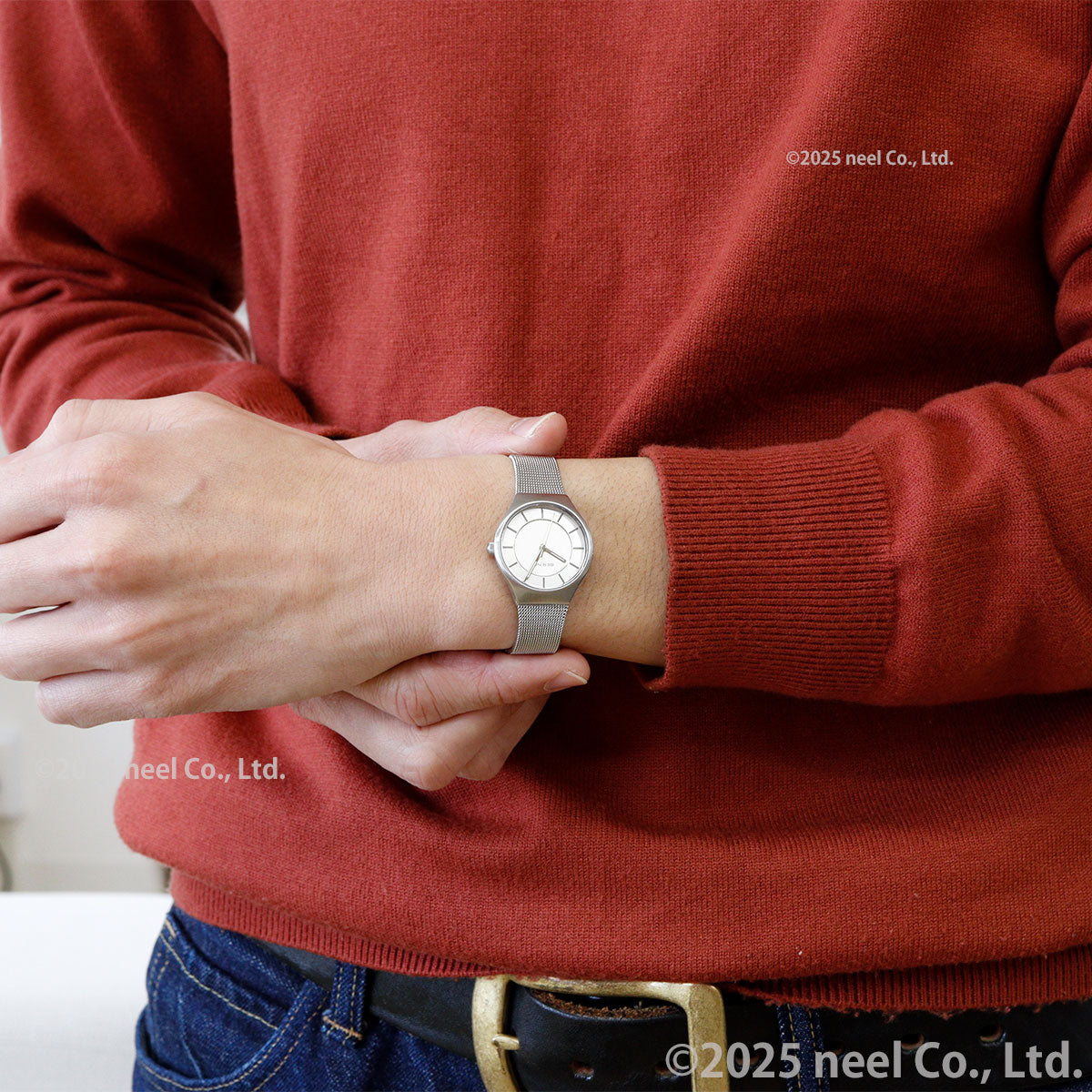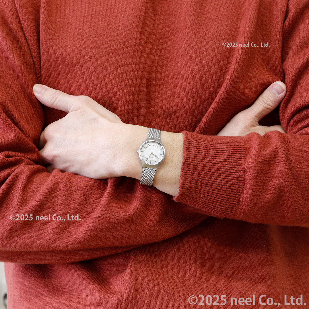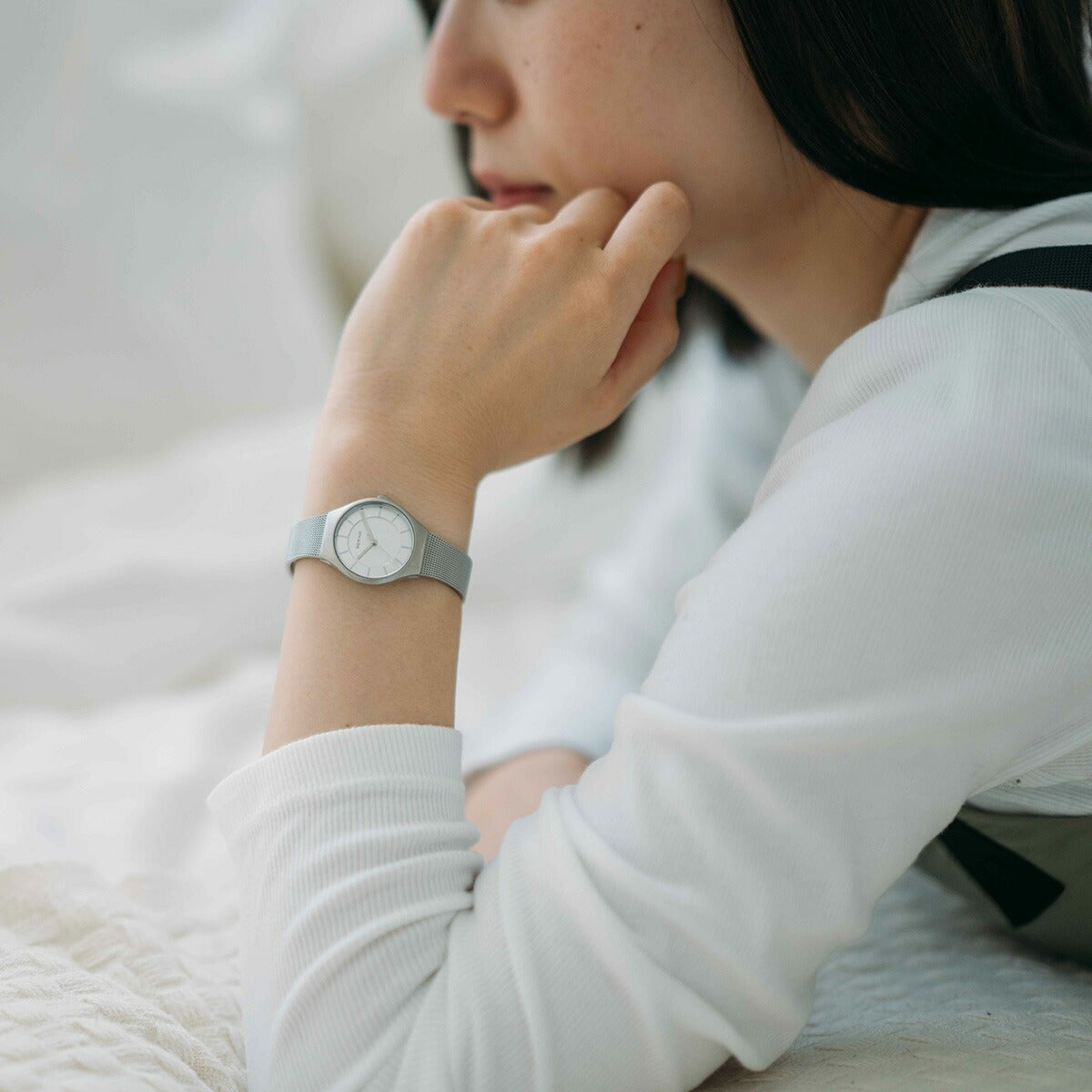 トレンドに左右されるのではなく、普遍的で長く愛用できるデザイン。これらの要素を体現したデンマークデザインウォッチの原点ともいえるコレクション。余計な装飾のないシンプルなデザインは様々なシーンに自然に溶け込み、視認性にも優れています。シルバーのフェイスと文字盤にブラッシュ加工を施し、ソリッド感のある仕上がりに。薄さ7mmのフェイスは、洋服の袖口を邪魔することなく腕に収まります。シンプルなラウンド型の文字盤に、直線的なバーのインデックスと針で構成されたフェイスデザイン。風防には、高級時計にも使用される傷のつきにくいサファイアガラスを採用しています。通気性が良く通年で使用可能なメッシュベルトは、腕へのフィット感も抜群で、ご自身でも簡単にサイズ調整が可能です。カラーは全体をワントーンで統一したプレスレットの様なシルバーカラー。 主張しすぎない洗練されたシルバーカラーは、どんなコーディネートにもよくなじみます。 35mmと27mmのフェイスサイズは、ディティールまで揃えた全く同じデザインのペアウォッチ。 35mmのフェイスサイズは、女性にもフィットする絶妙なサイズ感です。
