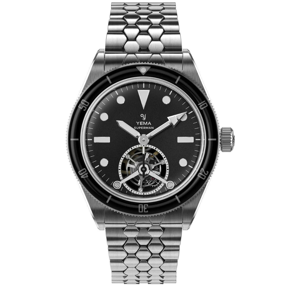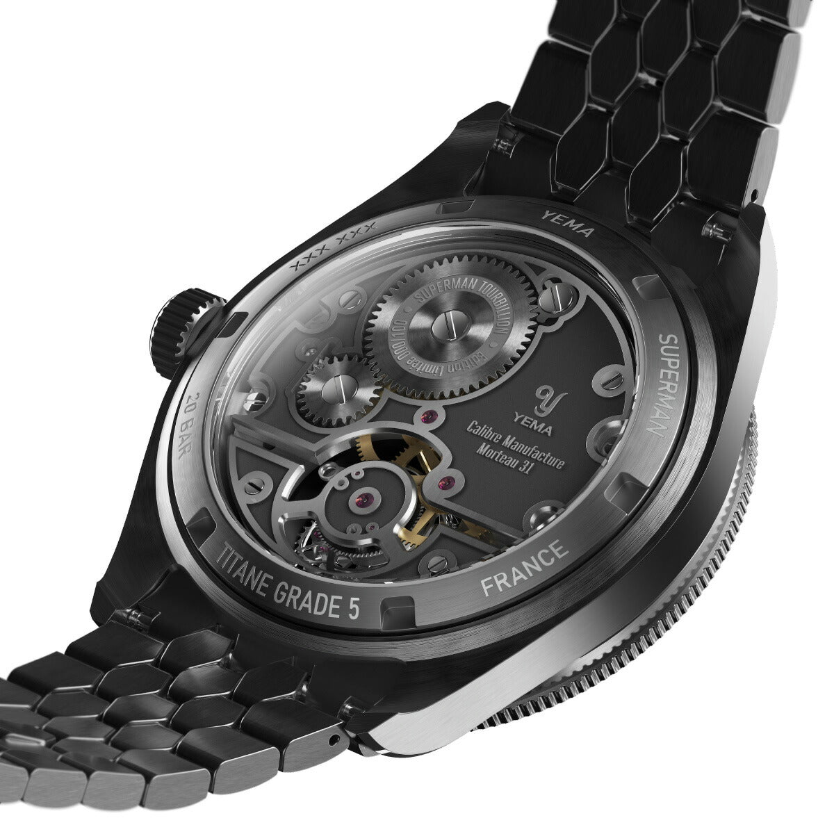 スーパーマン・トゥールビヨンCMM.31の発表はイエマのミレジム・エディションの新たな時代の幕開けを意味します。これは私達の最高峰の時計製造ノウハウと自社開発技術を示す年間限定シリーズです。「ミレジム」はイエマが製造する最高峰の技術を意味します。これはフランスの時計製造の伝統と卓越性への絶え間ない追及を具現化した最高級であり細部に至るまで手作り、かつ非常に限定されたタイムピースです。2025年、私たちは最も象徴的なモデルである「YEMA スーパーマン」をミレジム・エディションとして選択しました。1963年に登場したプロフェッショナル・ダイバーズウォッチが、技術革新とオートオルロジュリー(高級時計製造)の仕上げ、そして堅牢なツールウォッチ仕様を兼ね備えた自社製トゥールビヨン・キャリバーによって再構築されました。世界限定100本シリアルナンバー付きです。