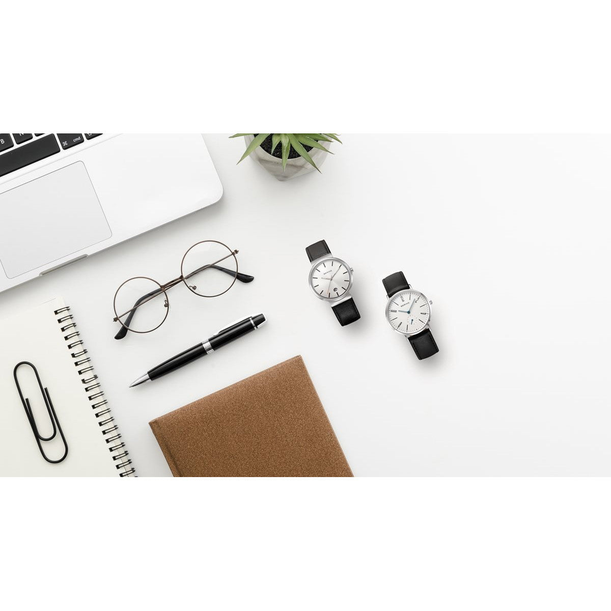 ラウンド型のケースと直線的なラインが調和したクラシックスカンジナビアンシリーズのコレクション。シンプルで洗練されたダイヤルのデザイン、装飾的な要素を抑え限られた配色の中で視認性を高めるために付けた色のコントラスト、シャープで直線的なフォルムは、実用性を重視した伝統的な北欧デザインの中にも力強さを感じることができます。36mmのサイズ感は腕への収まりがよく、ユニセックスサイズとして着用することができます。ベーシックなモノトーンのコンビにはアクセントにブルーの3針を配しました。無駄を省いた、本質的な美しさを腕元でお楽しみ頂けます。
