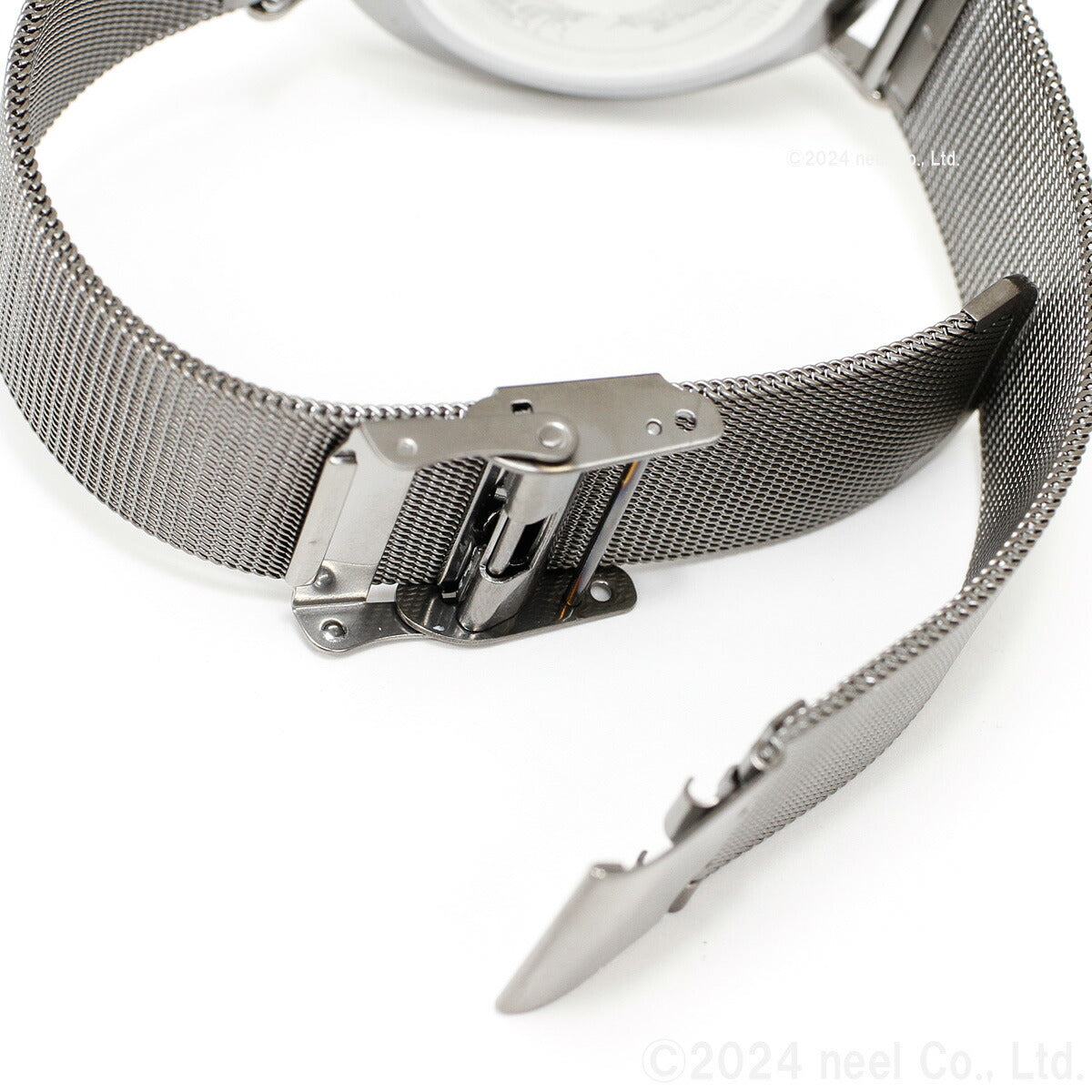 実用性とクラシックデザイン。6時位置にスモールセコンドを配し、インデックスはアラビア数字とバーで構成したクラシックなフェイスデザインに、滑らかで腕に馴染むカービングメッシュストラップを合わせました。ケースの厚みをおさえてガラス面をフラットに仕上げ、柔らかなカーブを描くメッシュストラップを採用することで、40mmのケースサイズでも大きすぎず、視認性とストレスフリーの着用感を確保しています。ケースとストラップには医療用にも用いられるステンレススチール(316L)を、風防には硬度と透明度の高いサファイアガラスを使用しています。クールビズの装いにも最適です。