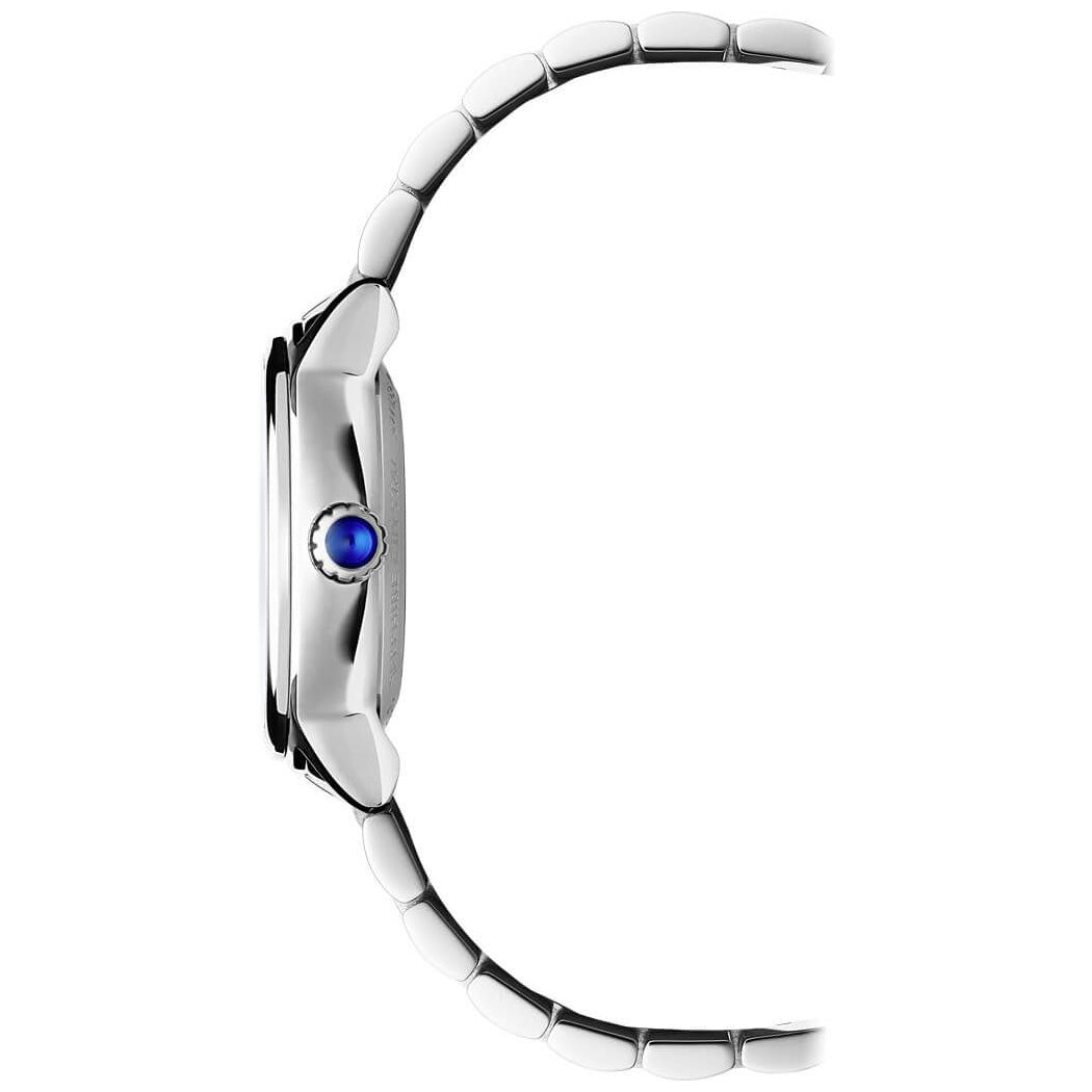 34mmのステンレススティール製ケースに包まれたホワイトマザーオブパールのダイアルには、インデックスにダイヤモンドの装飾が施され、3時位置に日付表示窓、6時位置にムーンフェイズ機能が備わっています。ロイヤルブルーの針が美しく時を刻む、優雅なタイムピースです。2010年に誕生したマエストロは、クラシック音楽や音楽家への讃美を表現したコレクションです。スイス時計の伝統的な製造技術を受け継ぎながら、上品さと洗練されたイノベーションを融合しています。