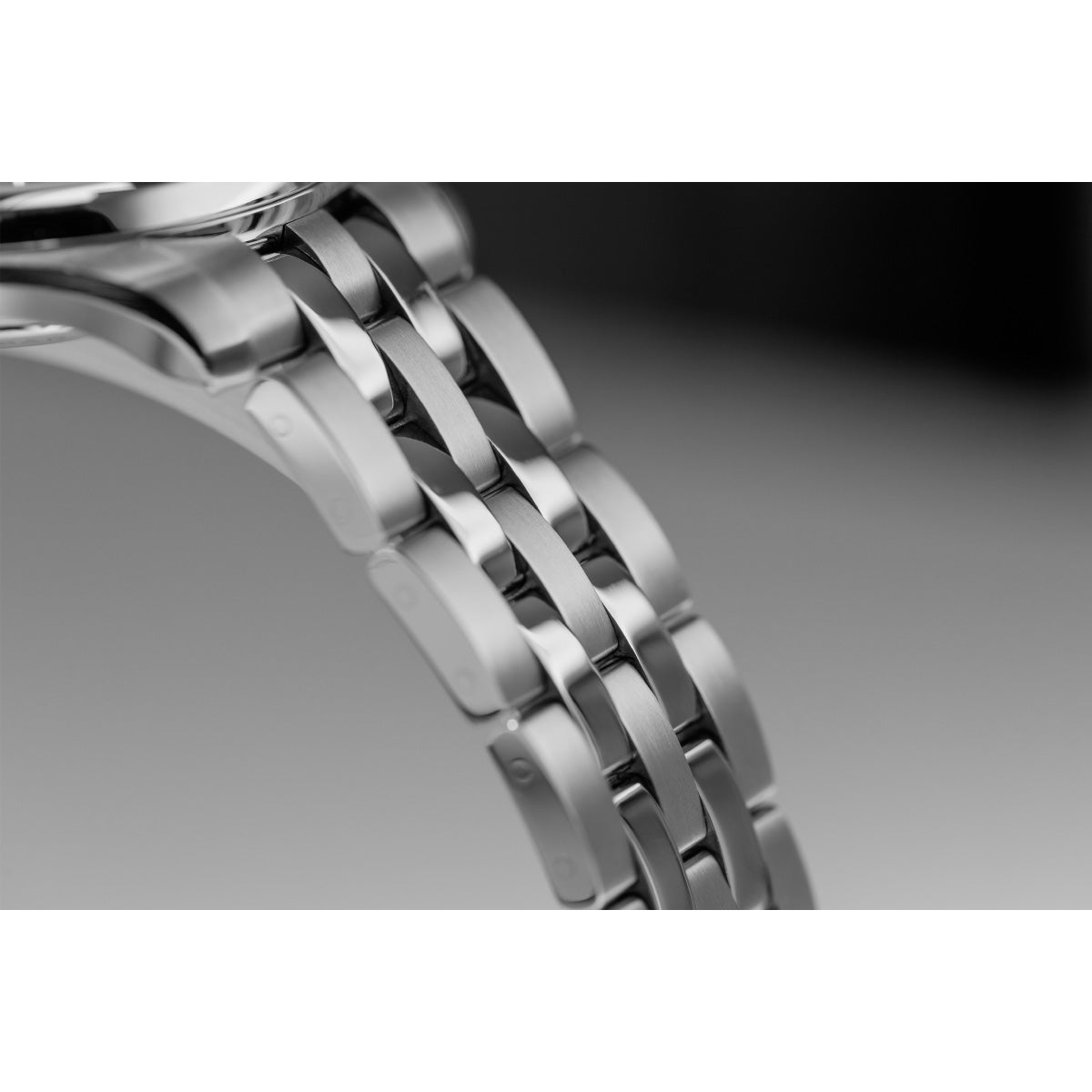 スポーティで、印象的で、自信に満ちたシリーズ、Meister S。ポリッシュ仕上げとサテン仕上げのステンレススチールの表面、堅牢なサファイアクリスタル、そして高い防水性を備え、腕元にスポーティさをもたらします。コンテンポラリーなデザインと表現力豊かなエレガントさ、そして精密性を兼ね備え、24時間365日着用できる完璧なタイムピースです。
