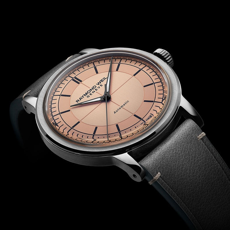 「ミレジム(millesime)」は、フランス語でヴィンテージを意味します。1930年代に流行したセクターダイアルや主にプラスチック製風防に見られたボックス型などの古典的なディティールに、現代の技術・素材・トレンドを交えるレイモンド・ウェイル独自の解釈を加えた、「ネオ・ヴィンテージウォッチ」です。復刻ブームの影響もあり、近年各社からセクターダイアルモデルが発表され、どれも高い評価を受けております。その中でも、『ミレジム』は往時を彷彿させる立体的なダイアルデザインが魅力的です。