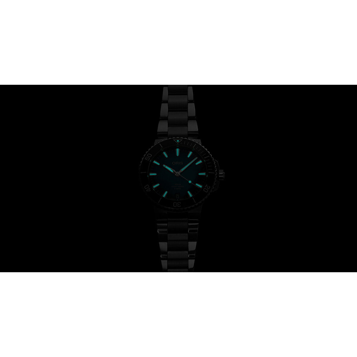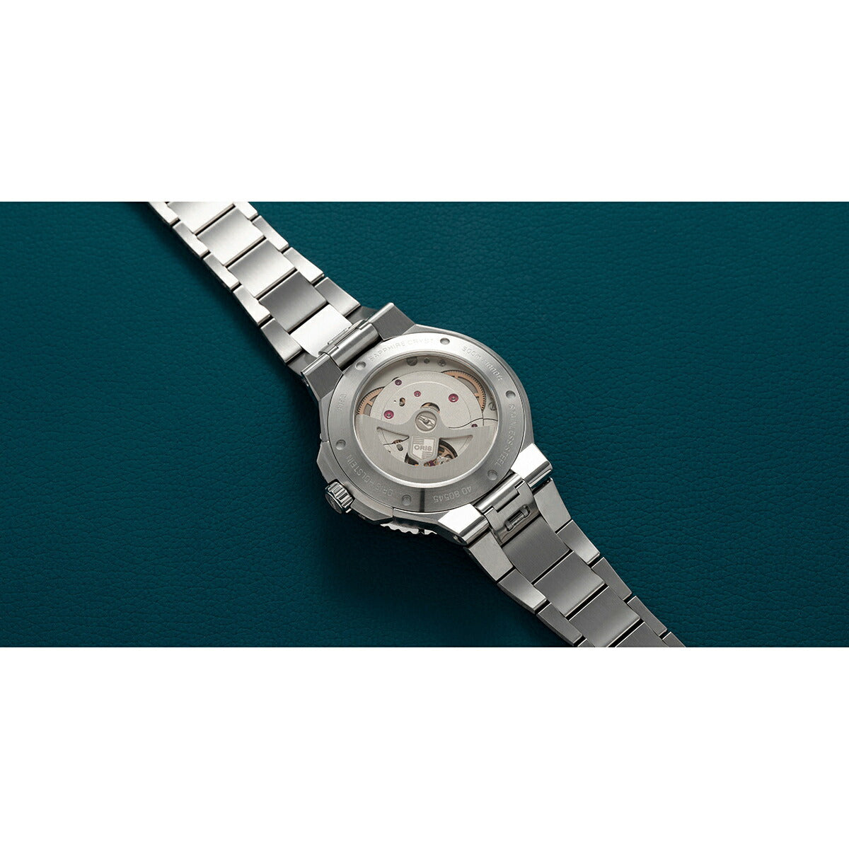 2024年に新しく生まれ変わったアクイスデイト キャリバー400は、よりエレガントでラグジュアリーなダイバーズウォッチです。搭載しているオリス自社開発自動巻きキャリバー400は、高精度、高耐磁性で5日間パワーリザーブ、オーバーホール推奨期間10年、品質保証期間10年のムーブメントで、新しい基準を設定するものです。300m防水の本格的なダイバーズウォッチでありながらスーツスタイルやカジュアルファッションなどシーンを選ばないデザインが特徴です。裏蓋のシースルーケースバックからは機械式ムーブメントを鑑賞することもできます。時計を着用したままクラスプ部分でブレスレットのサイズを微調整することができる機構はオリスが特許を取得しています。別売りのラバーストラップへは特別な工具を使わなくてもワンタッチで交換可能です。