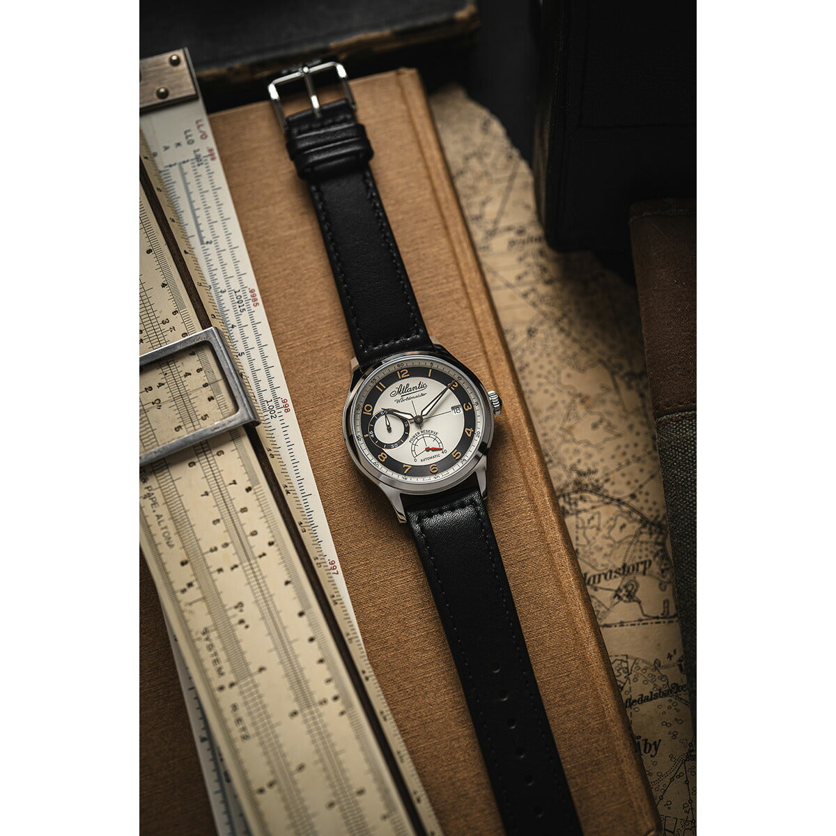 レトロな魅力と現代時計の完璧なマリアージュ。1950年代のクラシックなデザインにインスパイアされたこのタイムピースは、アトランティックの豊かな伝統に敬意を表しながら、現代の時計製造の精密な機械的強化に対応しています。このタイムピースの心臓部は、信頼性の高いセリタSW279-1自動巻きムーブメントです。精度と寿命の長さで知られるこのムーブメントは、スイスのクラフツマンシップの証であるだけでなく、このタイムピースの機能的なエレガンスを支えています。それは、6時位置に配されたパワーリザーブ・インジケーターと、9時位置に配されたスモールセコンドのサブダイヤルに現れています。これらの機能は時計の実用性を高めるだけでなく、ヴィンテージの魅力にも貢献し、フォルムと機能の洗練された融合を生み出しています。パワーリザーブ・インジケーターは、実用的で望ましい機能であり、巻上げを行わずに時計が作動する時間を表示します。この自動巻き時計を着けることで時計と着用者の間に絆が生まれるのです。アトランティック ワールドマスター オリジナル パワーリザーブのヴィンテージ・レトロな外観は、時計デザインの黄金時代へのノスタルジックな旅であり、このタイムピースを単に時を告げる方法としてだけでなく、身に着けることのできる時間そのものの物語としています。ヴィンテージウォッチ愛好家の方にも、ストーリーのあるタイムピースがお好きな方にも、アトランティック ワールドマスター オリジナル パワーリザーブは最適です。この時計は単なる時計ではありません。過去の不朽のエレガンスと現在の技術的な輝きに対する由緒ある証なのです。