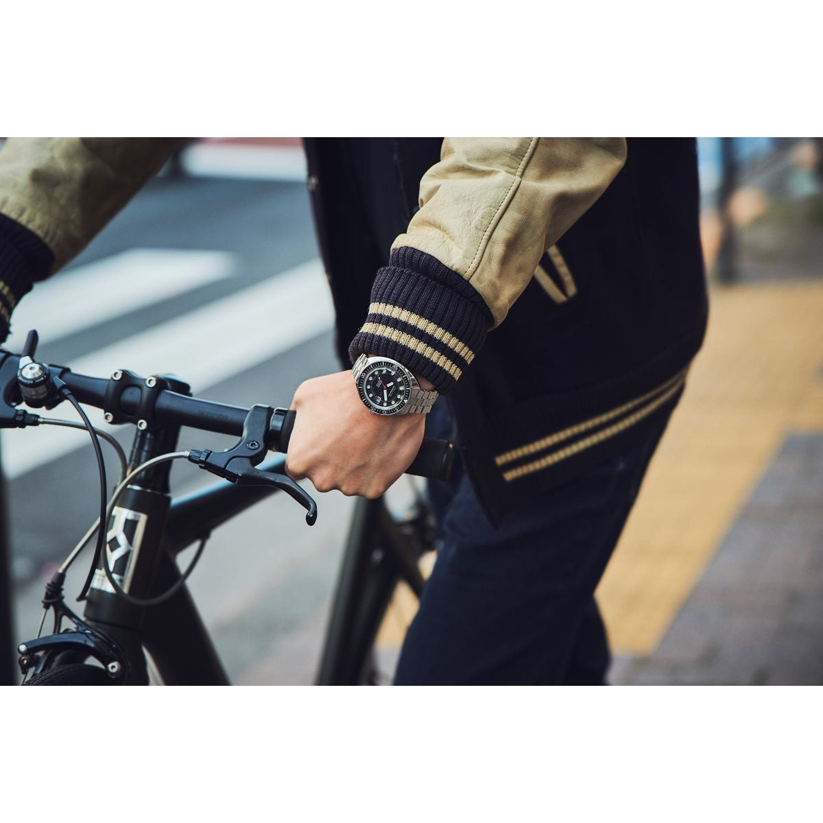 好評のDevil Diverから、ケースが現行品の3mm小さい41mmのモデルが新登場。文字板の6時位置に、“Devil Diver”の愛称の由来となった“666 FEET”の表記があります。レトロな雰囲気を演出する旧BULOVAロゴ。立体的で特徴のあるインデックスは、畜光仕様になります。60~70年代に流行したクロスラインを使用し、もの懐かしさを感じさせるデザインです。アメリカ本国未発売モデルです。