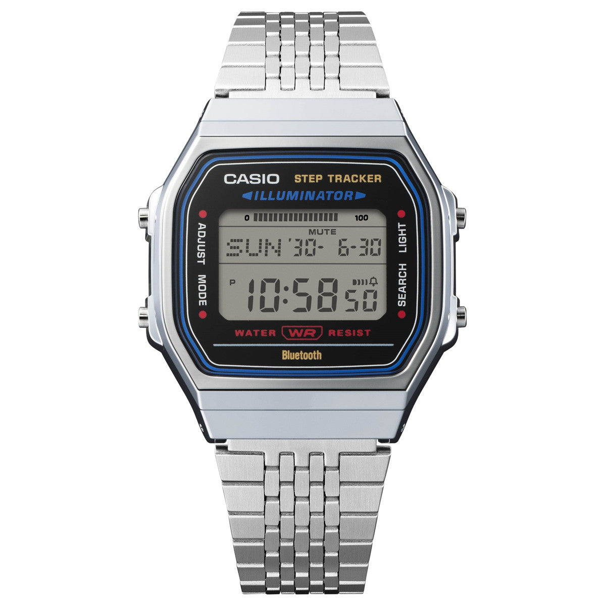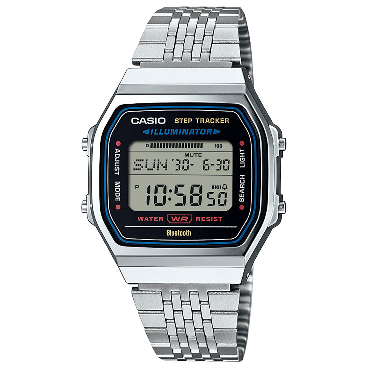 角型フォルムのクラシックデザインに、スマートフォンリンクや日常の健康管理に役立つステップトラッカー機能を備えたモデルです。デジタル液晶のシンプルなケースに、細やかな輝きを放つ多列タイプのメタルバンドを採用し、腕馴染みのよいフラットなフォルムに仕上げました。機能面では、センサーが体の動きを感知し歩数を自動的にカウント。その日の歩数を液晶画面でお知らせします。また、Bluetooth(R)でスマートフォンと連携し、時計の時刻を自動修正。時計の設定をスマートフォンのアプリ上で簡単に行えます。さらに、時計で計測した歩数データなどをアプリに転送。ライフログとして日々の健康管理に役立てられます。クラシカルなデザインと便利な機能で、ヘルスコンシャスな毎日をサポートします。
