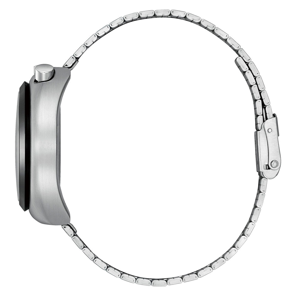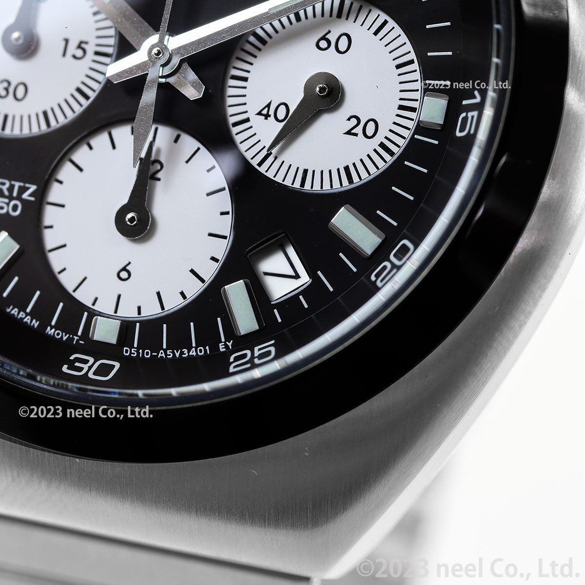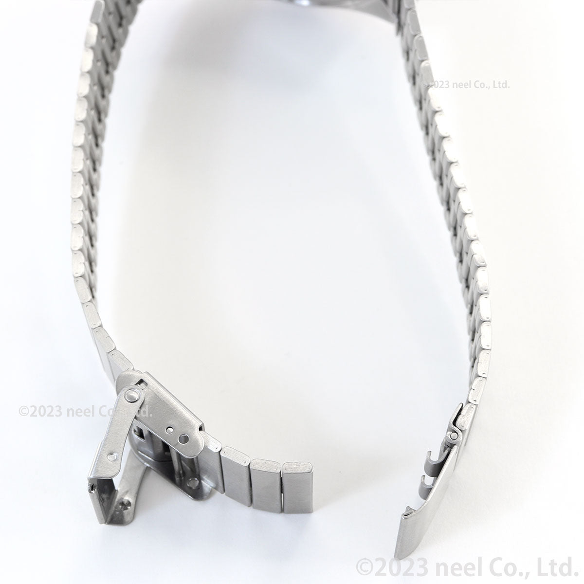 TSUNO CHRONOツノクロノ誕生50周年に新配色を追加。シチズン初の本格クロノグラフ機能付き時計として1973年に登場した「クロノグラフ チャレンジタイマー」のデザインを復刻。ケースの12時側に配置されたプッシュボタンがツノのように見えることから「ツノクロノ」の愛称で呼ばれてきたアイコンモデルに新配色を追加。やわらかなケース形状とシャープなベゼルが調和する絶妙なデザインに仕上げ、ケースサイズも38.0mmと手首に心地よく収まり、男女問わず使いやすいサイズ感です。ブラックの文字板ベースとホワイトのサブダイヤルを組み合わせたカラーリングで、クールなデザインを好む方におすすめの配色です。