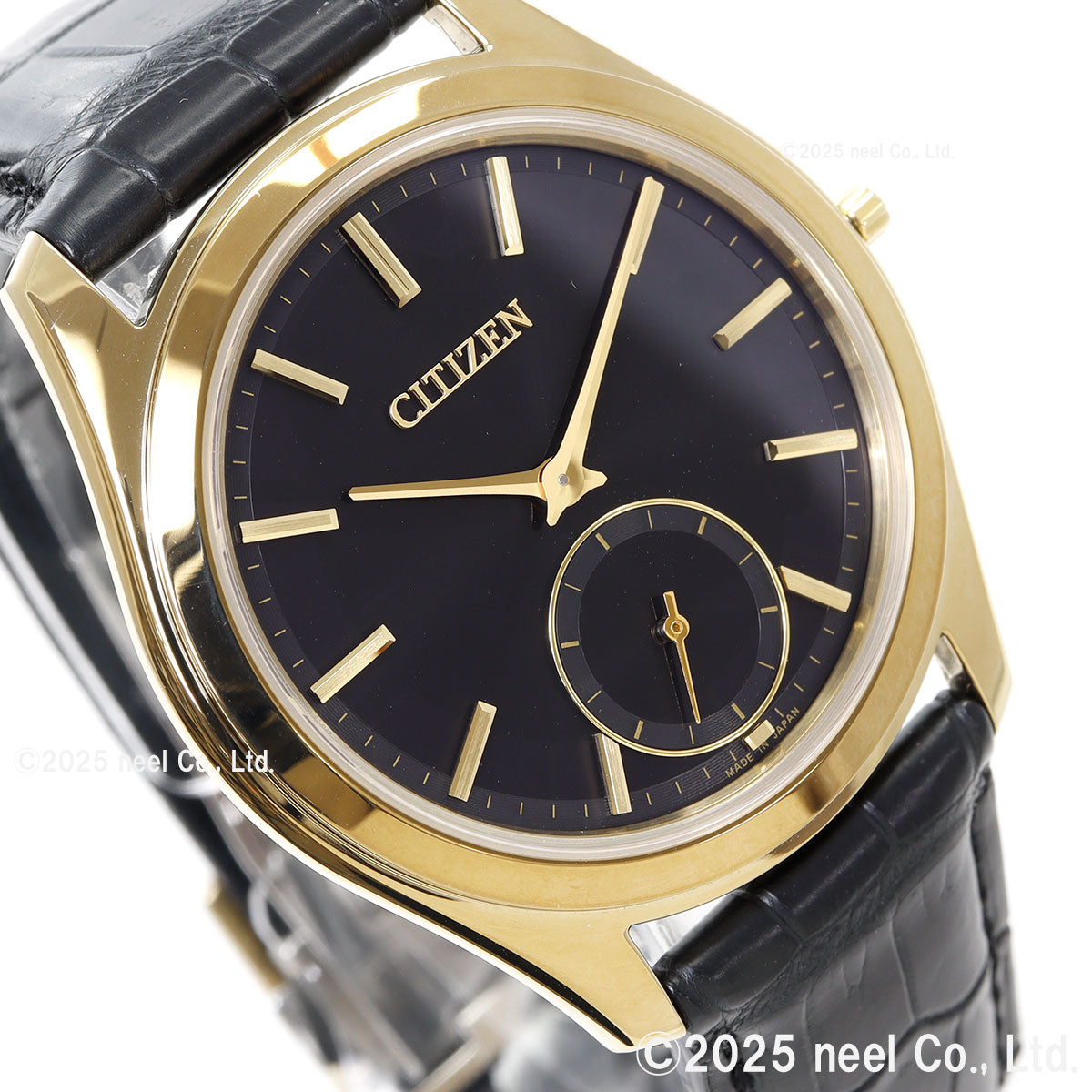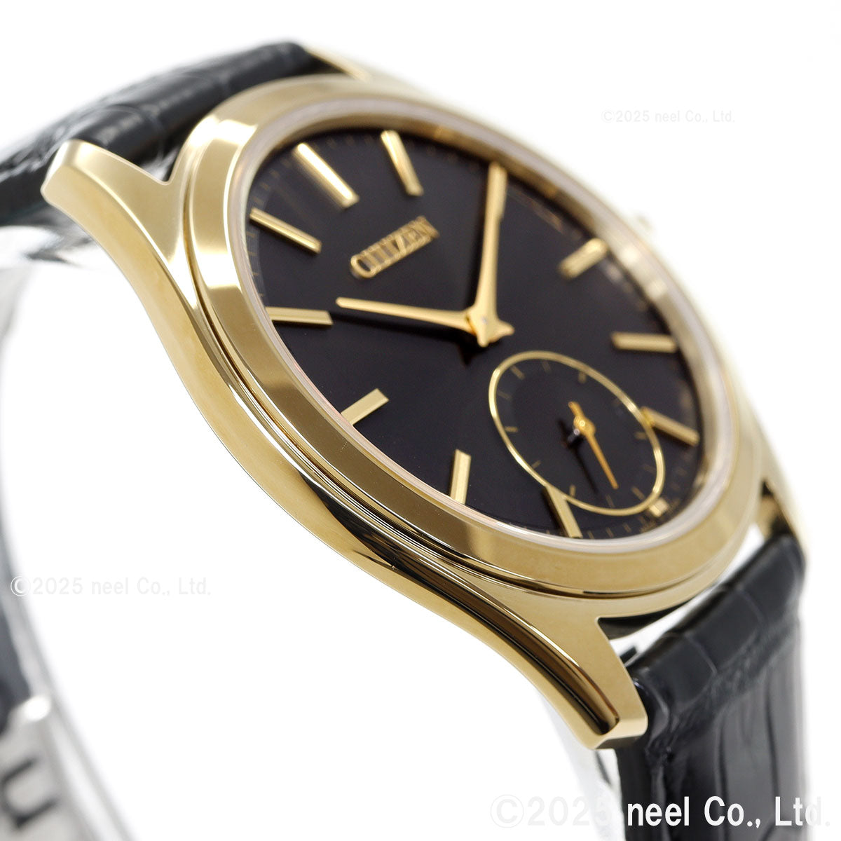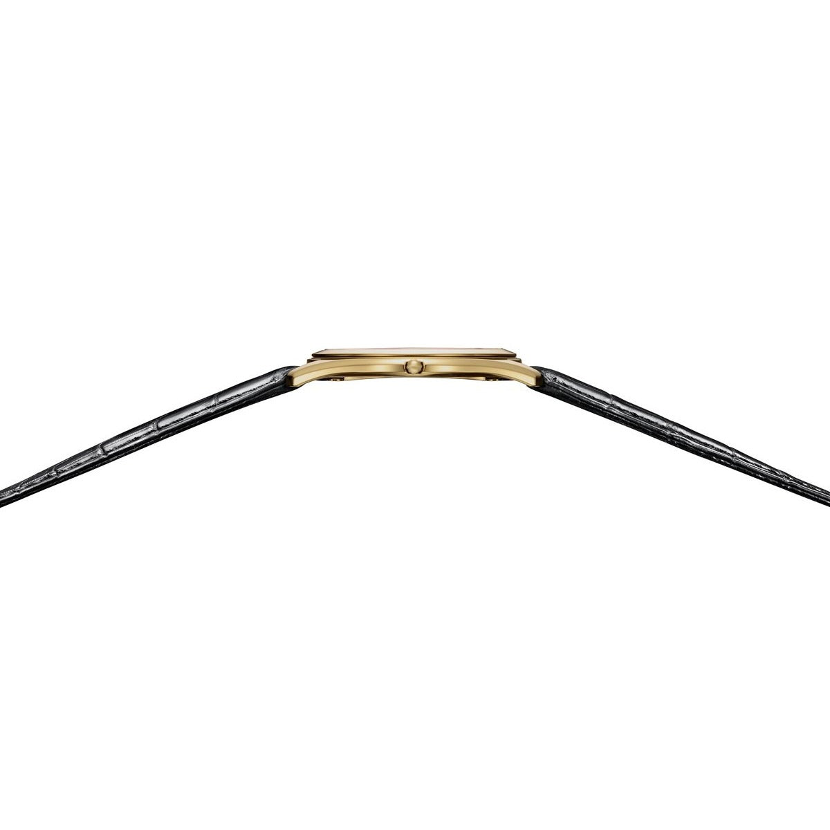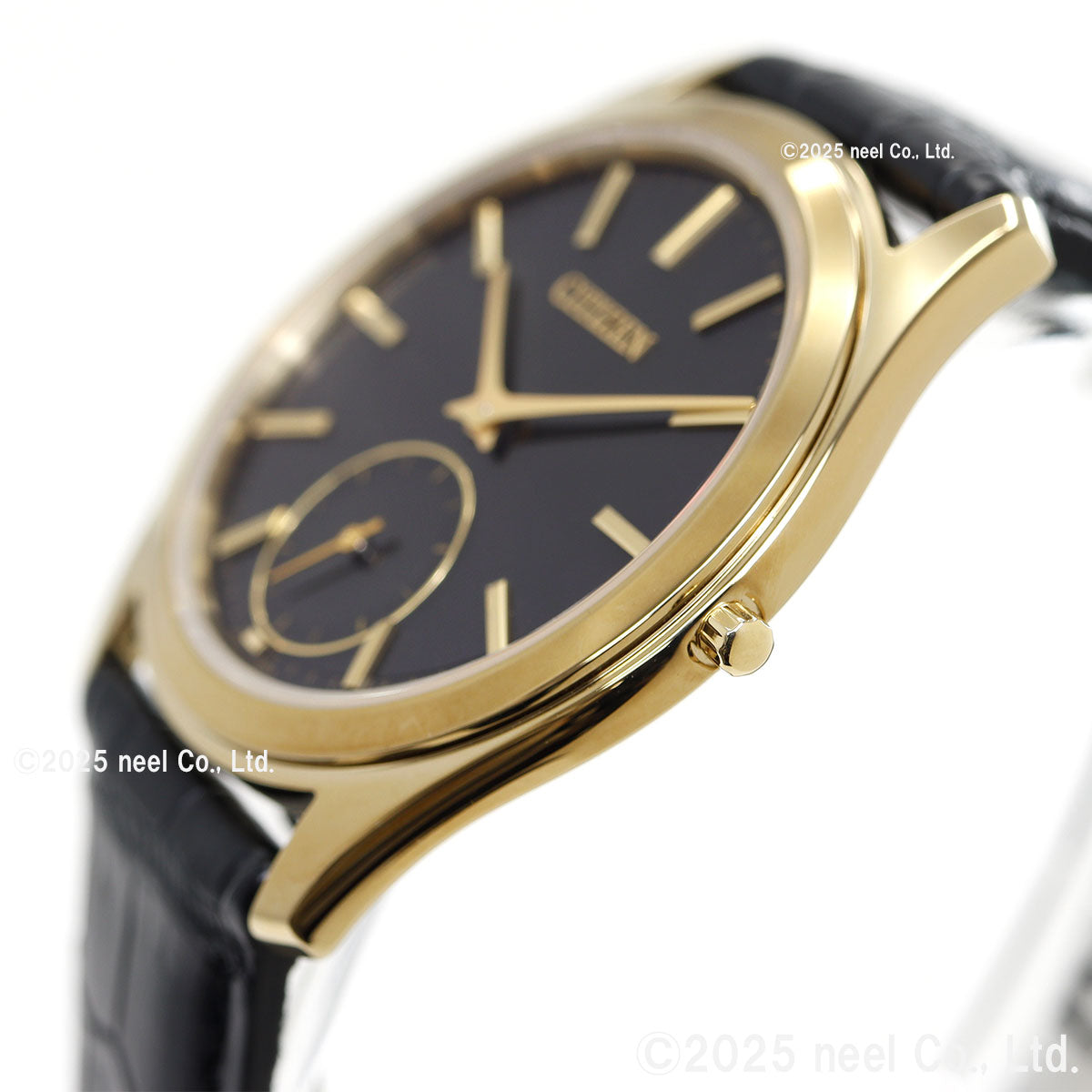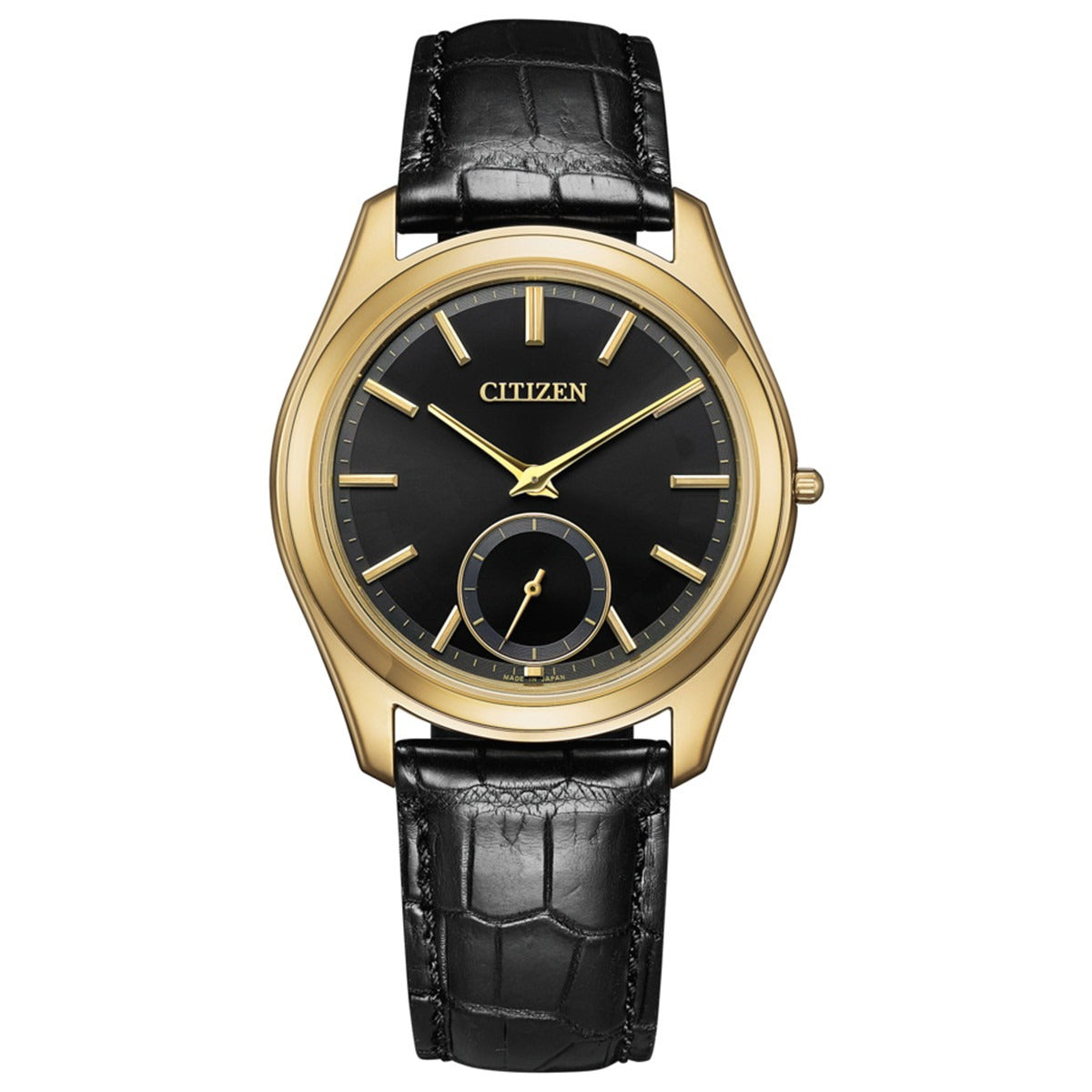 圧倒的な薄さを実現し、美しさと快適な装着感にこだわるドレスウオッチ、シチズン Eco-Drive One(エコ・ドライブ ワン)。艶やかで独創的な雰囲気が、大人の落ち着きある時間を彩るスモールセコンドモデルが登場。ケースには表面硬化技術「デュラテクト」の新色アンバーイエローを採用。様々なスタイルにフィットする落ち着きある輝きを湛えたゴールドカラーが特徴です。文字板は、艶やかでシックなブラックに、金色の針とインデックスが上品かつエレガンスな印象を与えます。無駄を削ぎ落とした薄型フォルムとの調和を追求し、インデックスは短くするなど、ミニマルな要素にまとめました。