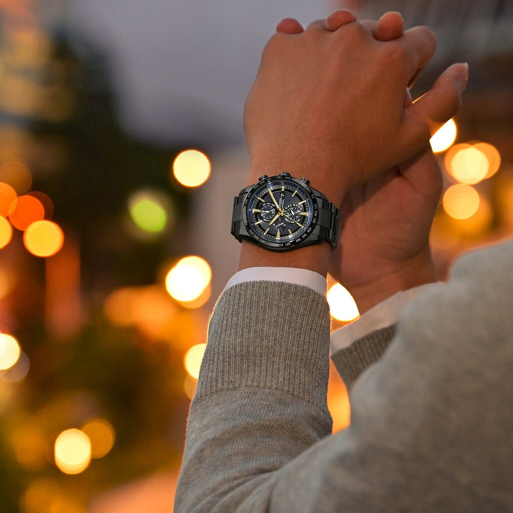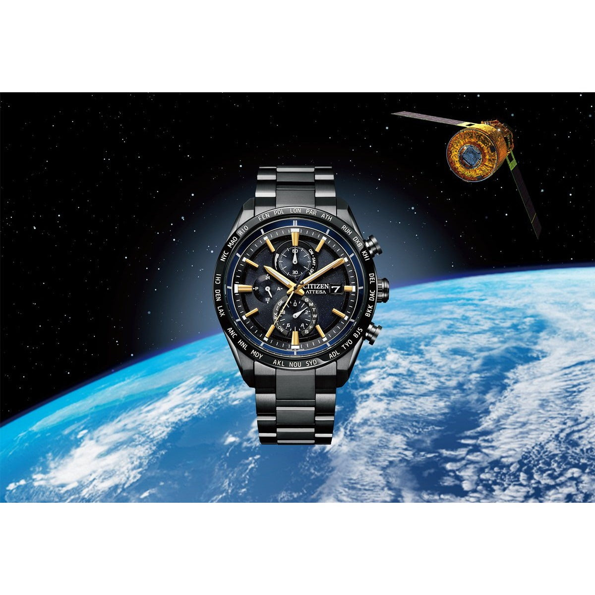 チタニウムで次世代を進み続ける、シチズン ATTESA(アテッサ)。JAXAの新型宇宙ステーション補給機「HTV-X」をイメージした限定モデル。「HTV-X」のボディに着想を得た個性的なカラーリング、ラメのきらめきを生かしたブラックの文字板が宇宙を彷彿とさせます。微細なラメがきらめくブラックの文字板が、宇宙空間を表現。「HTV-X」のボディカラーに着想を得たイエローゴールドの針とインデックスが、堂々とした存在感を放ちます。文字板を囲むインジケーターリングには、「HTV-X」が羽のように伸ばすソーラーセルをイメージした深いブルーを採用しています。裏ぶたには「HTV-X」のミッションマークを刻印しています。