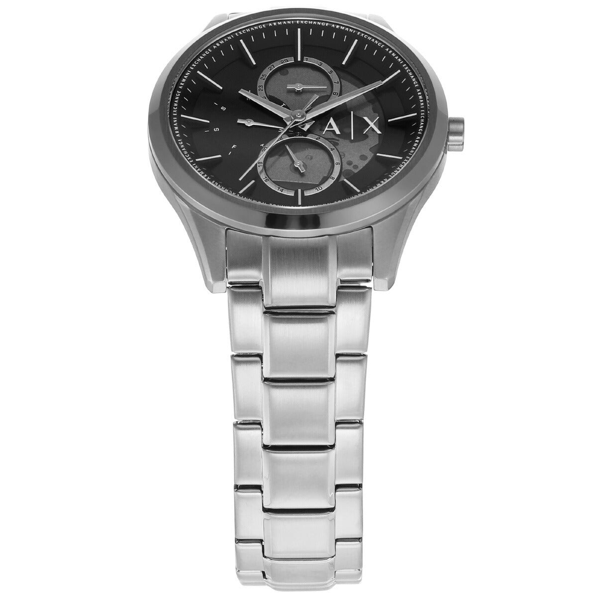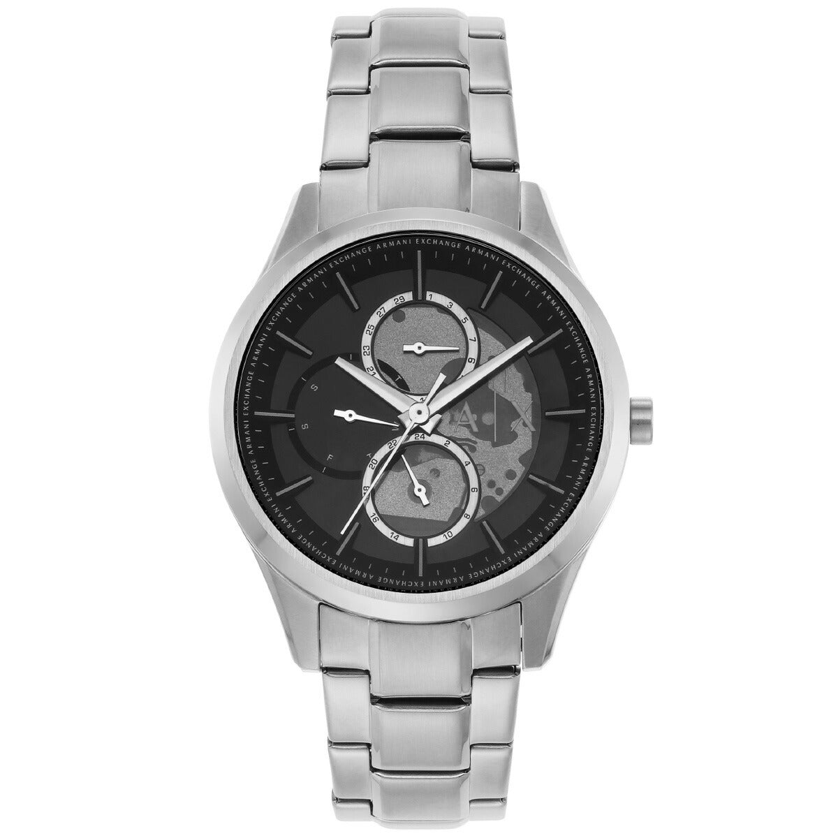 42mm径ケースに多機能ムーブメントを搭載したArmani Exchangeのウォッチ。ブラックのサンレイダイヤルに、ステンレススチール製ブレスレットを組み合わせました。