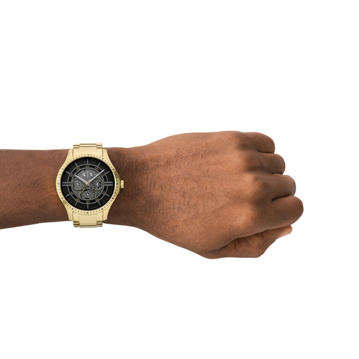 46mm径のケースに多機能ムーブメントを搭載したArmani Exchangeのウォッチ。ブラックのマットダイヤルに、ゴールドトーンのステンレススチールブレスレットを組み合わせました。