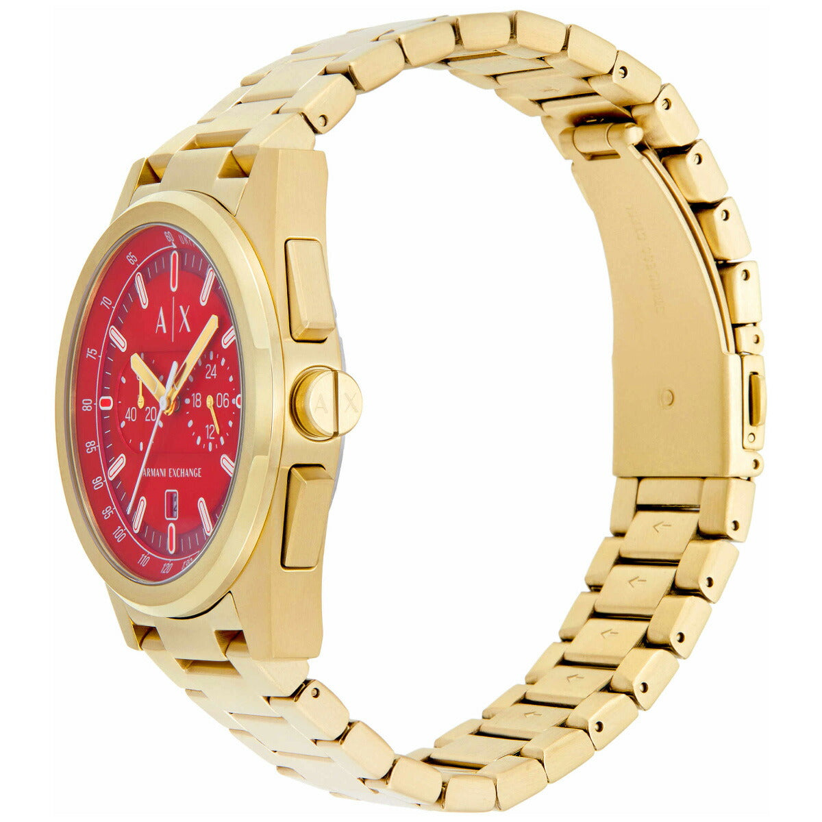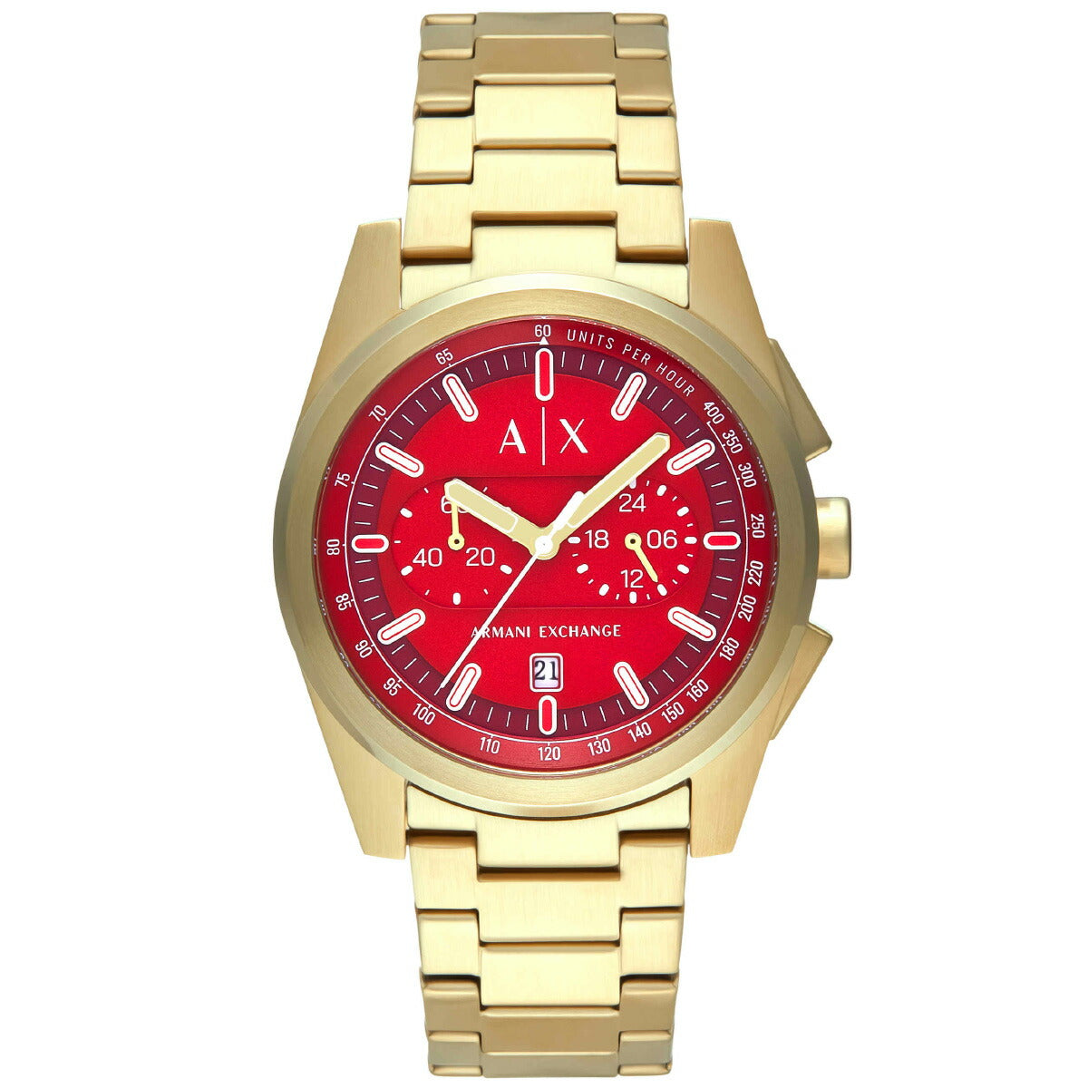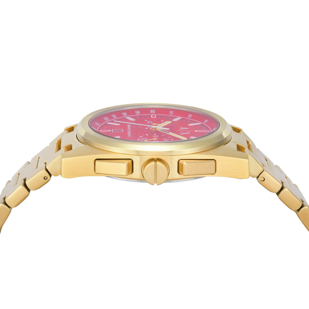 42mm径のケースに注目を集めるレッドのマットダイヤルを配したArmani Exchangeのクロノグラフウォッチ。ゴールドトーンのステンレススチールブレスレットがラグジュアリーな魅力を演出し、耐久性に優れたミネラルクリスタルがダイヤルを保護します。精確なクォーツクロノグラフムーブメントを搭載し、スタイルと機能性を兼ね備えたこちらのウォッチは、あらゆるシーンで活躍する存在感のあるアクセサリーです。