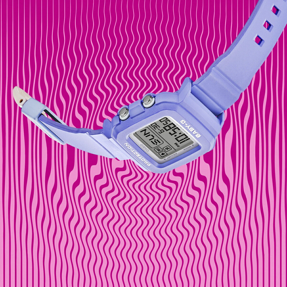 2024年に誕生30周年を迎えるBABY-Gから、自分の好みに合わせて使い方が楽しめる新シリーズ「BABY-G+PLUS(ベイビージープラス)」です。BGD-10Kは、スクウェアベゼルのデジタルウオッチと専用の時計ホルダーがセットになったモデルで、工具不要で簡単にベゼルとバンドの取り外しが可能です。手首に着けるだけでなく、付属の専用ホルダーにセンターケースをセットすれば、ユニークなチャームとしても活躍します。腰やバッグにつけたり、日々のスタイルに合わせて楽しめます。2000年前後のトレンドにインスパイアされた「Y2K」のムードを感じさせるカラーテイストを採用し、ファッションに華を添えるカラーバリエーションをご用意しました。つるんとしたシリコーンホルダーはシールやアクリル板の間にステッカー等を挟んでアレンジし、自分仕様にデコレーションすることが可能です。加えて、時刻モードでライトボタンを押すと、ドット絵キャラクター(ボーダー、ダンサー、イルカ、ハリセンボン、イヌ、ネコ)のアニメーションをランダムに表示。かわいらしい動きで、フェイスを楽しく演出します。時刻が見やすいデジタル液晶に、BABY-Gらしい遊び心をプラスしました。耐衝撃構造、10気圧防水などの機能面も充実しています。BABY-Gらしい遊び心をプラスし、自由なカスタマイズを楽しめるシリーズです。