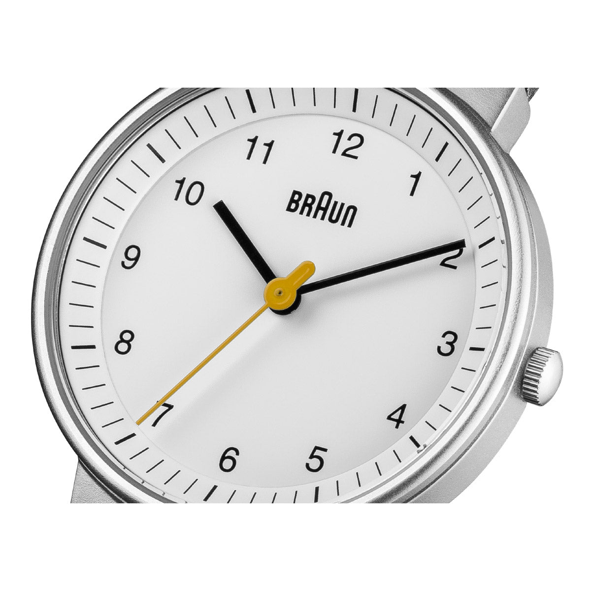 タイムレスなミニマルウォッチ。2012年に発売し、人気を博した32mmのユニセックスサイズ。シンプルで機能的なBRAUNらしいデザインコンセプトで作られたこの時計は、余計な装飾をせず、機能を優先させたミニマルなデザインで、男性・女性、フォーマル・カジュアルを問わずご使用いただけます。