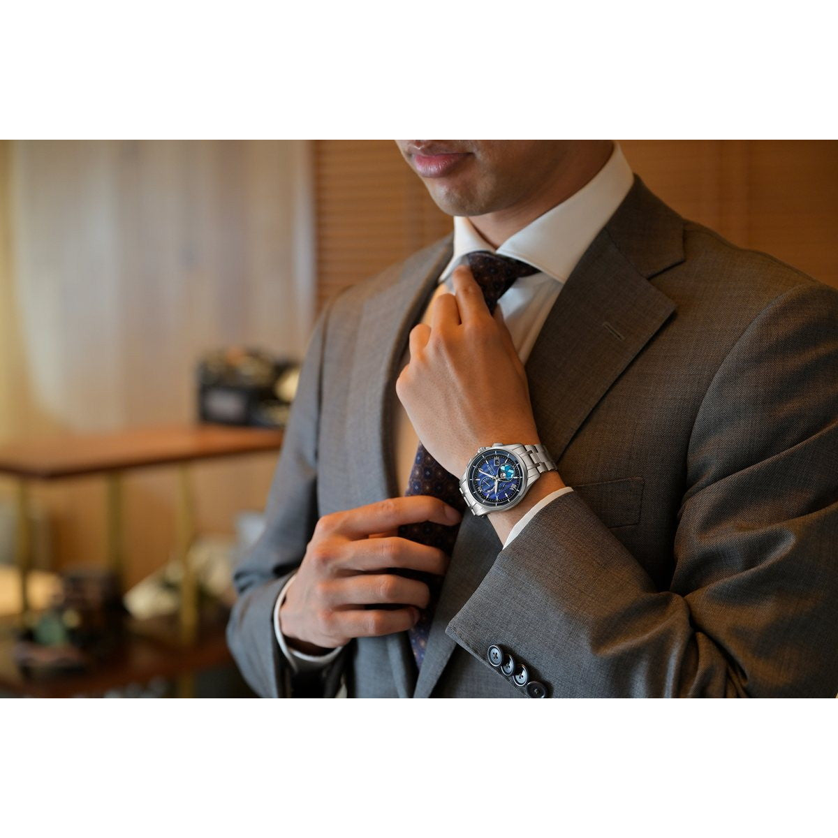 | ■BY1000-51L キャリバー:H874 精度:月差±15秒(非受信時) 光発電:フル充電時約2.5年可動(パワーセーブ作動時) デイ&デイト表示 24時間表示 月齢表示(ムーンフェイズ) 月齢自動計算機能 北・南半球月齢表示切替機能 パーペチュアルカレンダー 日中米欧電波受信 受信局自動選択機能 定時受信機能 強制受信機能 ワールドタイム機能(24時差) サマータイム機能 衝撃検知機能 針自動補正機能 充電量表示機能 充電警告機能 過充電防止機能 パワーセーブ機能 10気圧防水 耐ニッケル / 耐磁1種 夜光(針+インデックス) 一部白蝶貝文字板 文字板部品:再生素材 フィットアジャスター 裏ぶたに都市表示を刻印 バンドアジャスト:割パイプタイプ 世界限定2200本 風防素材:サファイアガラス(無反射コーティング) ケース素材:スーパーチタニウムデュラテクトプラチナ(ライトシルバー色) ケースサイズ:横41.5mm ケース厚:10.8mm バンド素材:スーパーチタニウムデュラテクトプラチナ(ライトシルバー色) バンド留金タイプ:三ツ折れプッシュタイプ バンド幅:21mm |