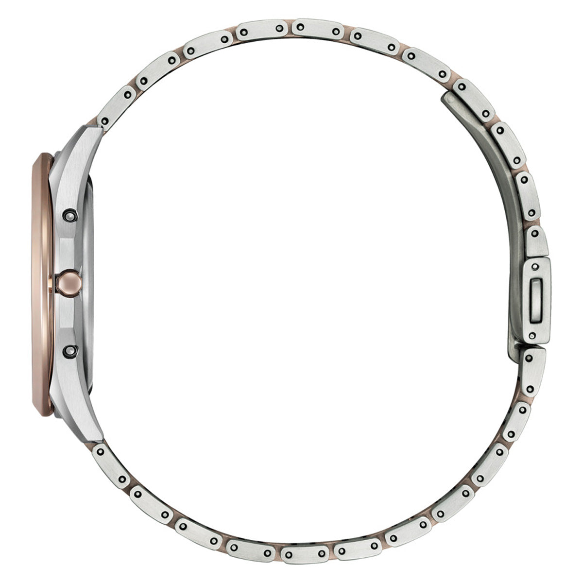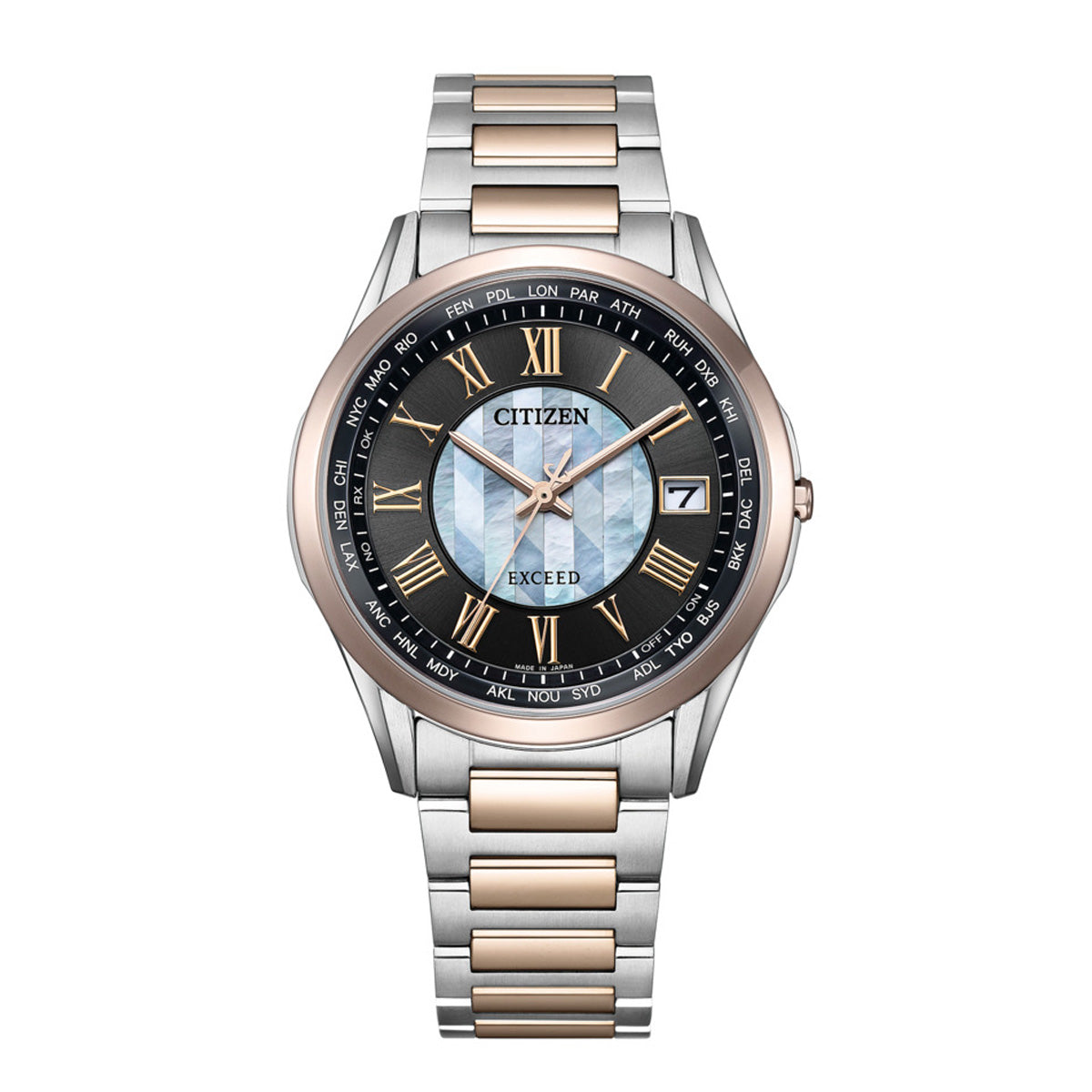 確かな品質と洗練されたデザイン。大人のためのドレスウオッチ、シチズン EXCEED(エクシード)。「誓いの矢」をテーマに、カットした白蝶貝を貼り合わせて矢羽根の模様を表現。新しい手法で豊かな表情を演出した限定モデルです。ケースとバンドは、ライトシルバー色とサクラ色を組み合わせたツートン仕様。ミラー仕上げの中ゴマが特別感を演出しています。