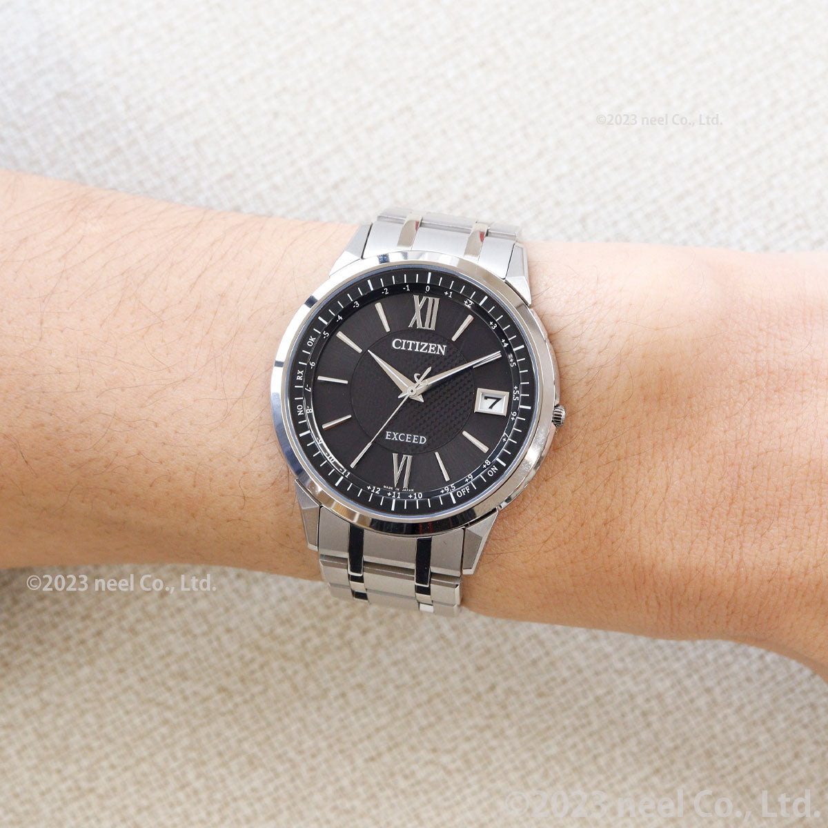 確かな品質と洗練されたデザイン。大人のためのドレスウオッチ、シチズン EXCEED(エクシード)。ダイレクトフライト機能を搭載したエコ・ドライブ電波時計に薄さを極めた新モデルが登場。新キャリバー「Cal.H147」を搭載。日米欧中多局受信型、光発電電波時計として世界最薄※のケース総厚7.0mm(設計値)を実現しました。文字板には都市表示を入れず時差表示のみに留めたシンプルな機能表示。ダイヤ形にカットされた時分針が、ケースのデザインと相まってシャープな印象を与えます。ブラック文字板中央にはピラミッドパターンを採用しています。クラリティ・コーティングを施したサファイアガラスを採用。陽射しの強い場所などでも時刻をはっきり読み取ることができます。※アナログ式多局受信型光発電電波時計において。2023年11月時点。シチズン時計調べ。