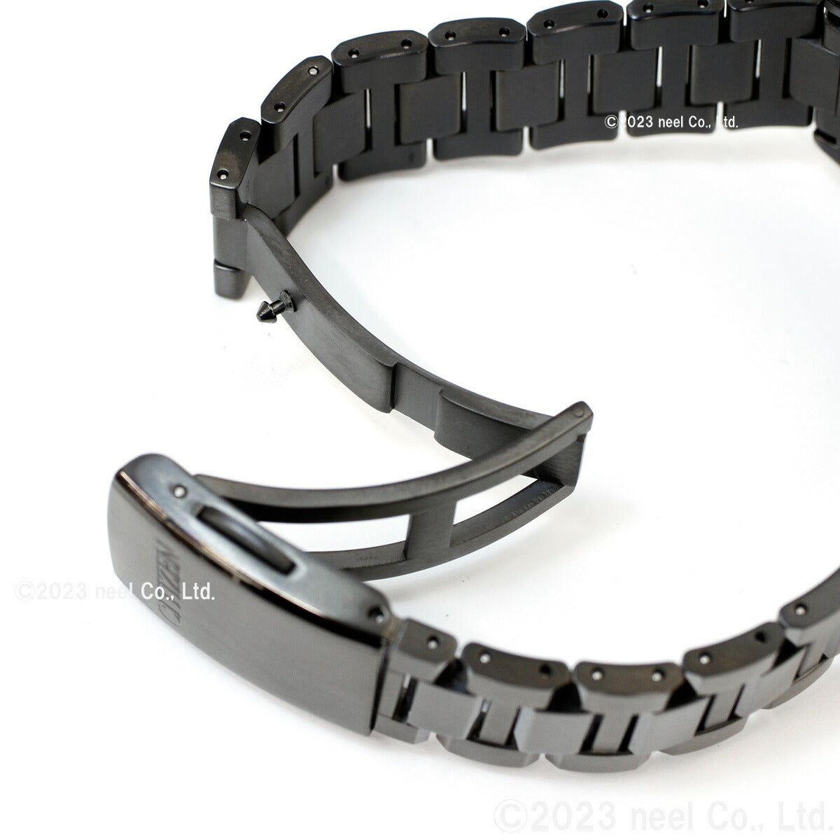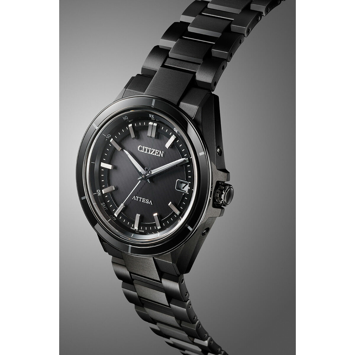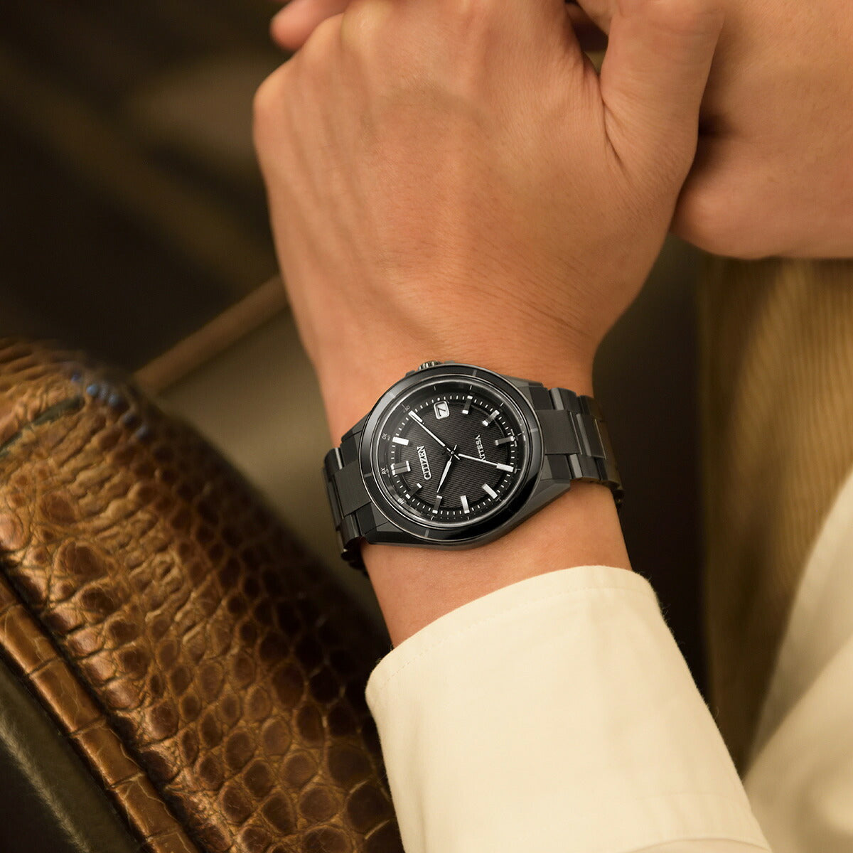 チタニウムで次世代を進み続ける、シチズン ATTESA(アテッサ)。人気シリーズACT Lineの3針タイプの新作。サファイアベゼルとスーパーチタニウム素材が織り成すソリッドな印象が、今までにない存在感を与えます。日本人の腕に馴染む39.5mmケースを採用した3針タイプ。サファイアベゼルがワンランク上の高級感をさりげなく漂わせます。アテッサらしい直線的なラインを文字板の中央から針、インデックス、ベゼルのラインへと放射状に伸ばし、外に向かって解き放たれる力を表現。エッジ感の際立つケースの形状、シンプルながらも立体感を持たせたインデックスがソリッドな印象を与えます。CB3035-72Eは、ブラックチタンのケース、バンドと、モノトーンで統一された文字板が、エレガントな高級感を演出。シンプルな文字板ながら印象的なデザインに仕上げています。