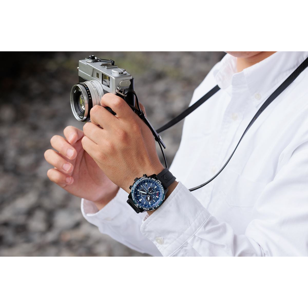 機能性、耐久性、安全性を兼ね備えた本格スポーツウオッチ、シチズン PROMASTER(プロマスター)。SKYシリーズの人気ラインから、空の色にインスパイアされた新作3アイテムが登場。CB5006-02Lは、深夜の空を連想させる濃いブルーのベゼルと文字板。差し色として白を使い、爽やかな印象をプラスしています。