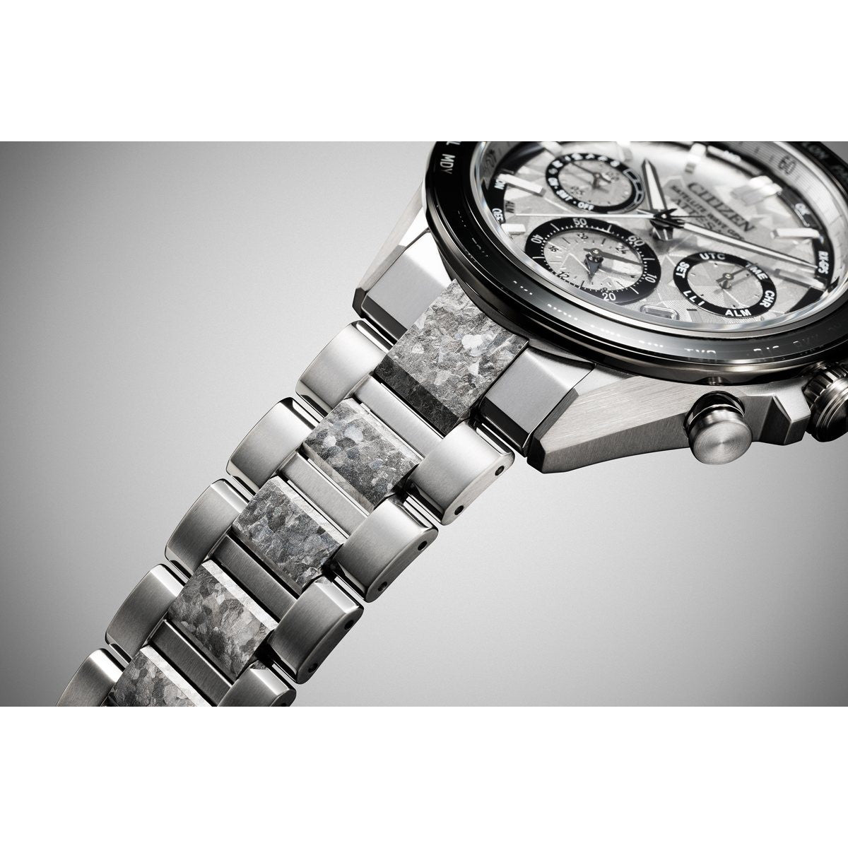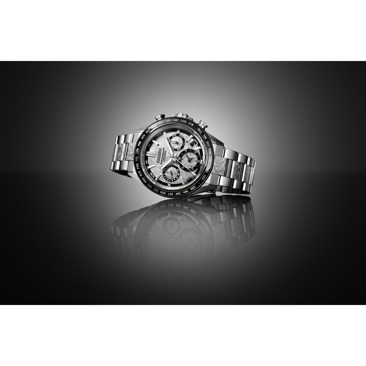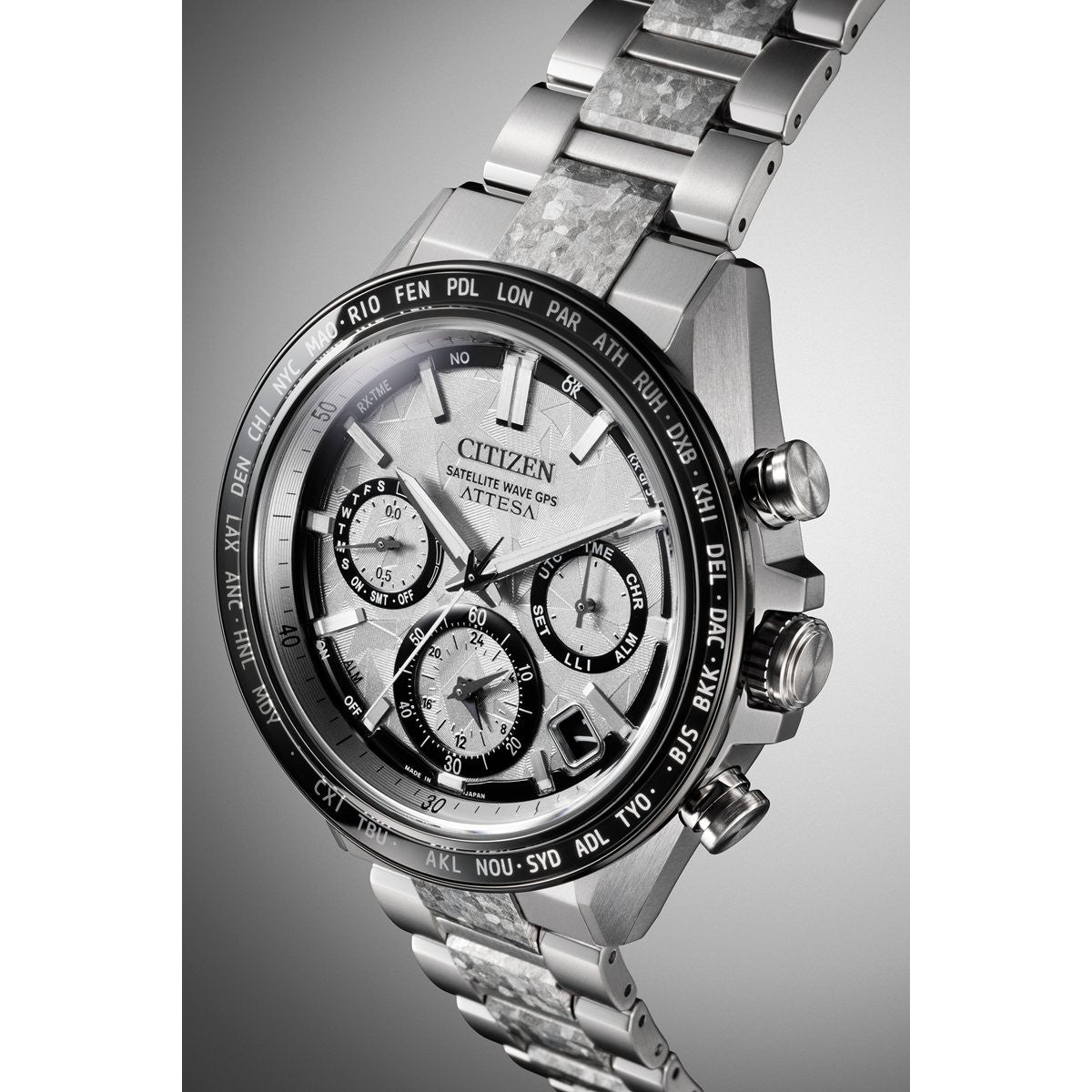 チタニウムで次世代を進み続ける、シチズン ATTESA(アテッサ)。結晶チタニウムにデュラテクトプラチナを重ねて手に入れた新しい輝き。1本1本が異なる表情を持つ限定モデルです。シチズン独自の技術で開発した「結晶チタニウム」に、デュラテクトプラチナを重ねた中駒を採用。結晶模様がプラチナの輝きをまとい、存在感を放ちます。シルバーの文字板は、結晶チタニウムをイメージしてデザインされたパターンをあしらい、光に反射して表情を変えるメタリック塗装をプラス。見返しリングにも同様にメタリック塗装を施すことで、文字板や外装との一体感を演出しました。
