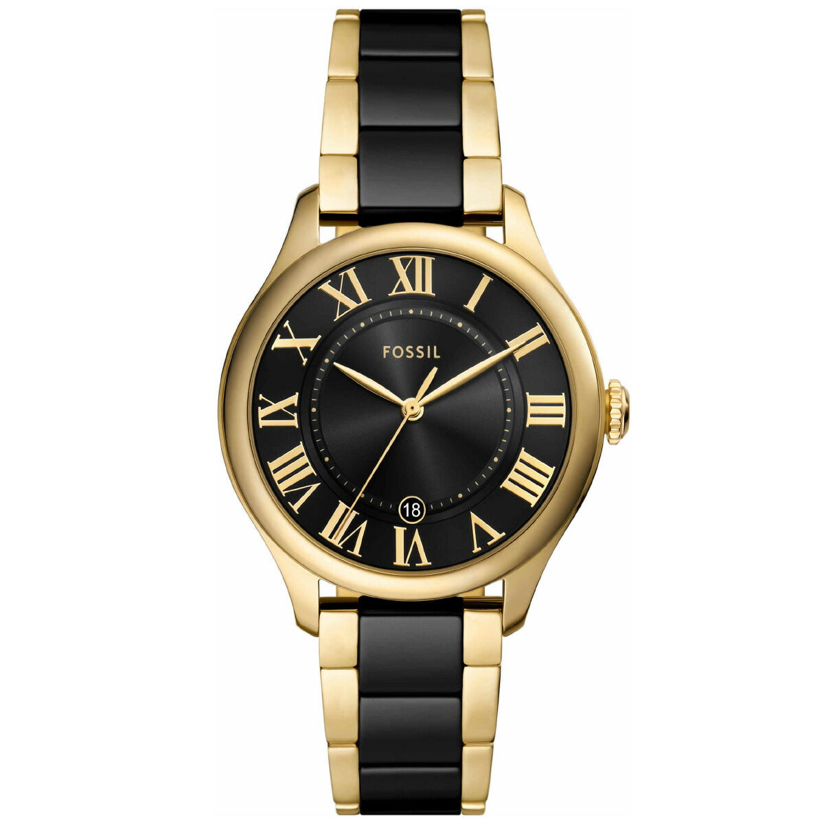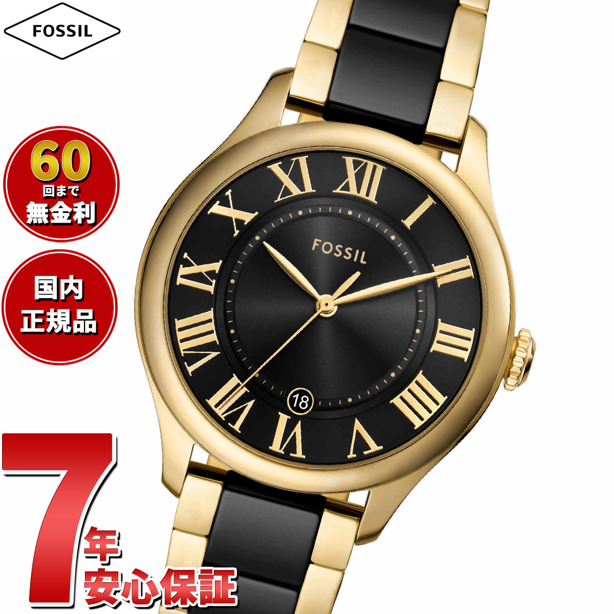 フォッシル FOSSIL 腕時計 レディース GILMORE 三針デイト ゴールドトーン&ブラック セラミックウォッチ CE1132【2025 新作】