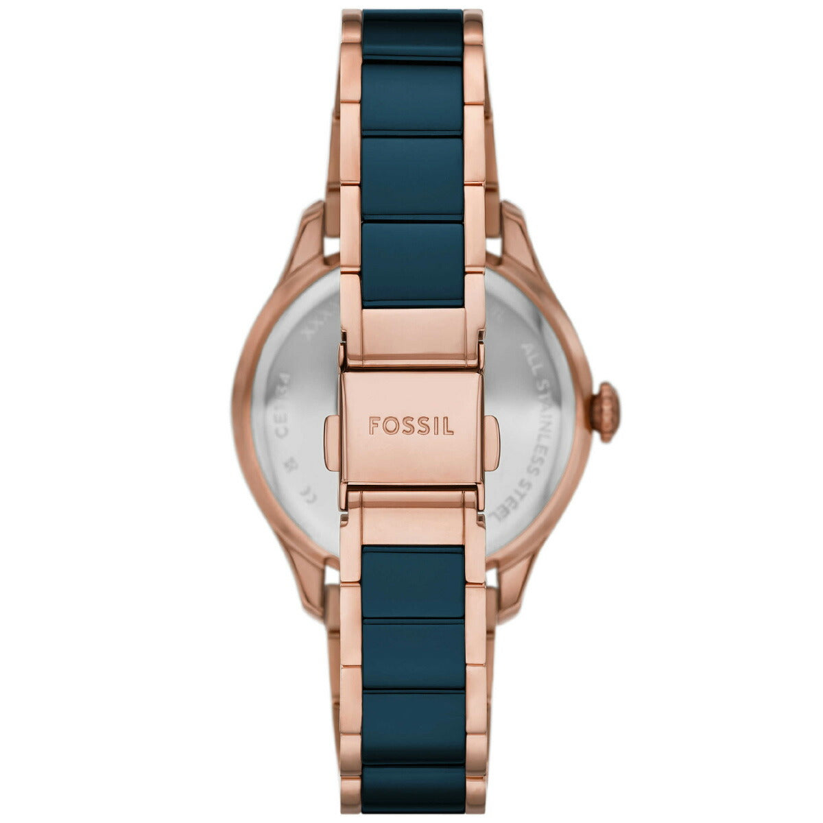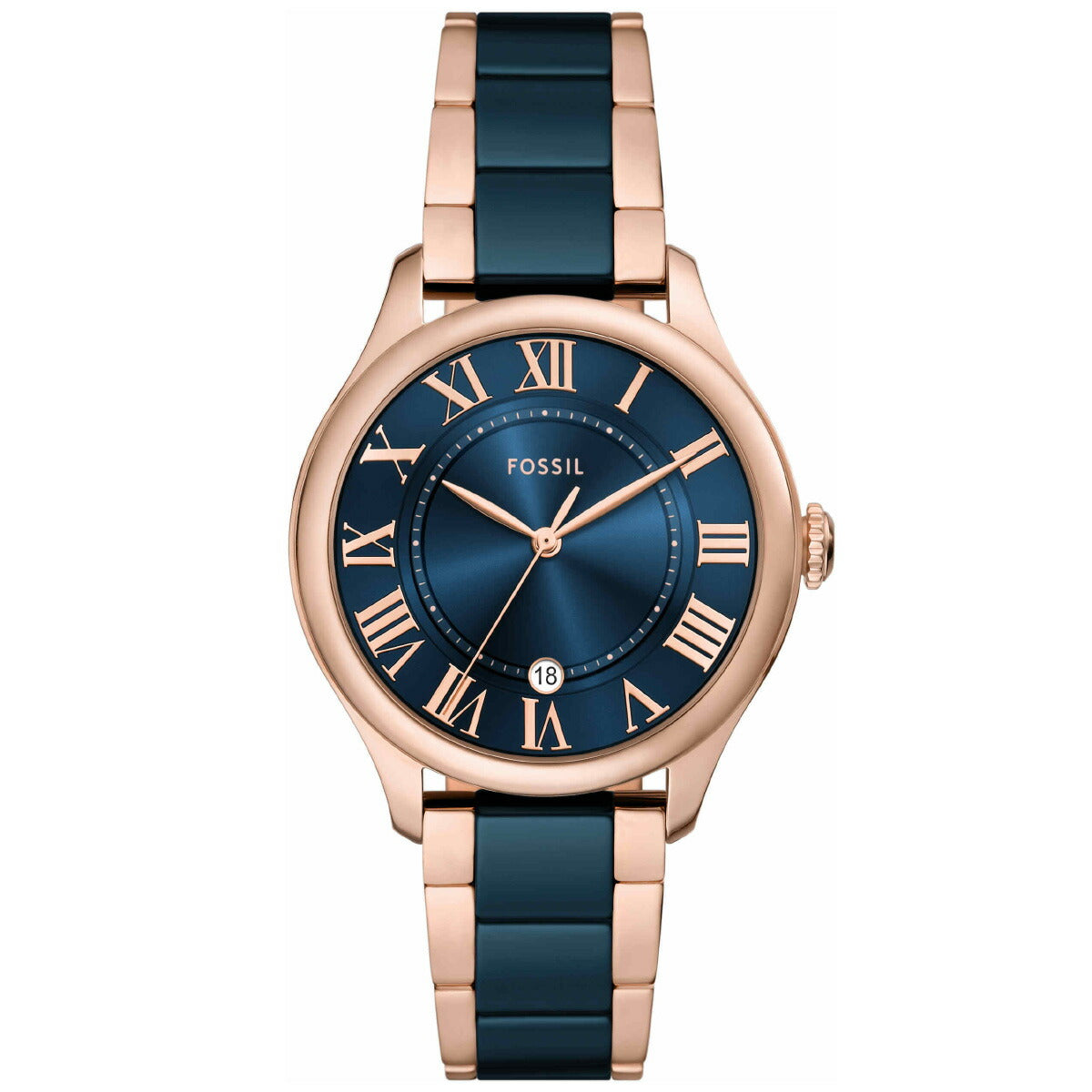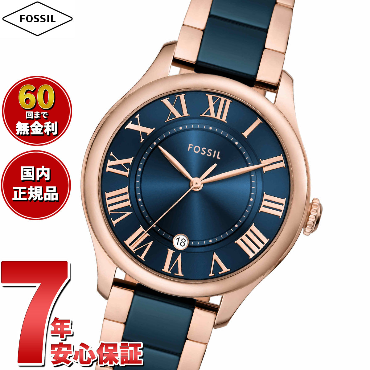 フォッシル FOSSIL 腕時計 レディース GILMORE 三針デイト ローズゴールドトーン&ネイビー セラミックウォッチ CE1134【2025 新作】