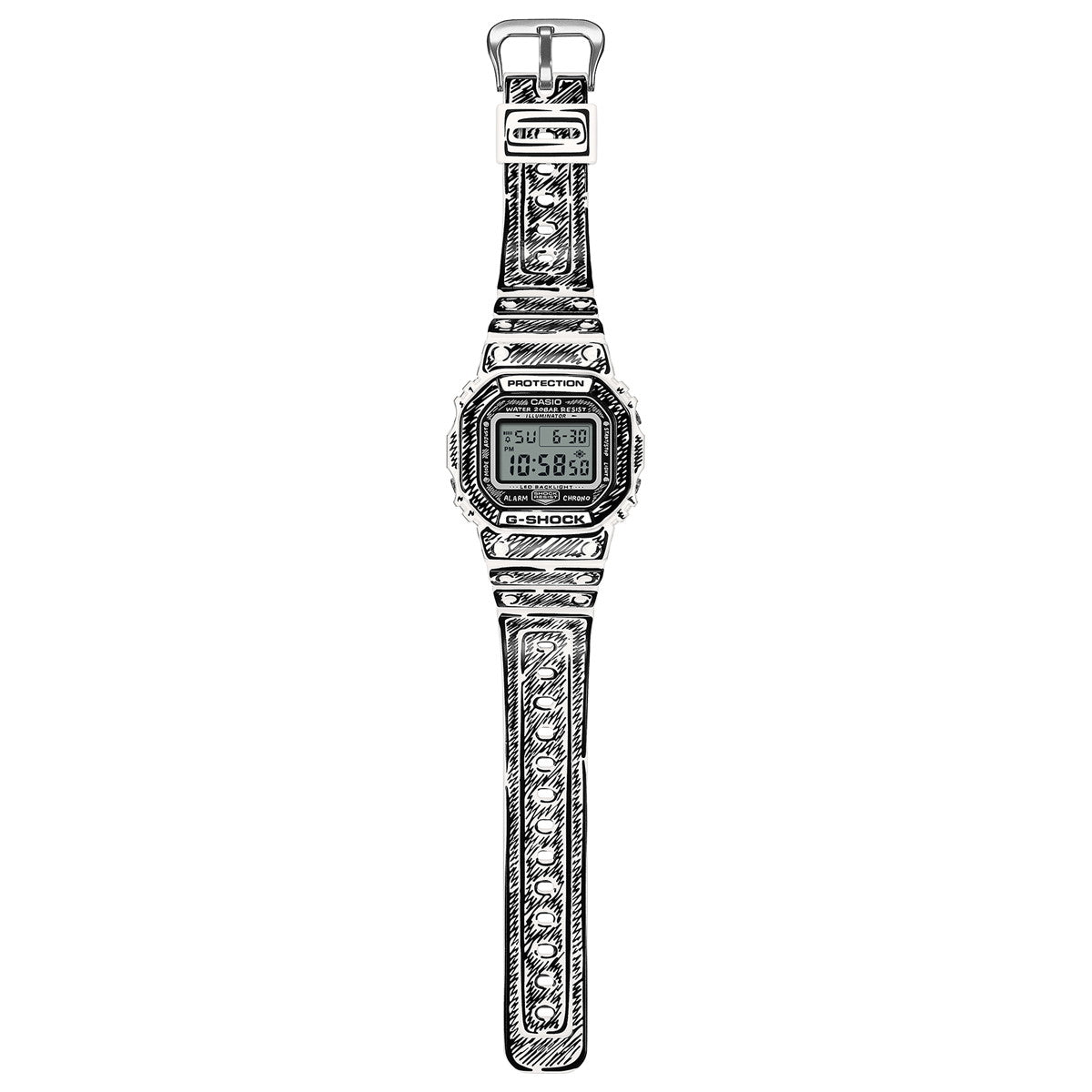 1983年の誕生以来、様々なカルチャーと融合し進化を続けるG-SHOCKから、Joshua Vides(ジョシュア・ヴィーダス)とのコラボレーションモデルが登場します。スクエアフォルムが人気の「DW-5600」。Joshua Videsならではのモノトーンを基調としたコミックタッチのグラフィックを、フェイス部からベゼル、バンドまで時計全体に配しました。ホワイトベースのDW-5600JVはブラックのグラフィックと光沢仕上げにより、強いコントラストと存在感を演出します。Joshuaの手描き風フェイスデザインが特徴で、バックライト点灯時には彼のトレードマーク「Cone」が浮かび上がります。特製パッケージ付きのスペシャルモデルです。