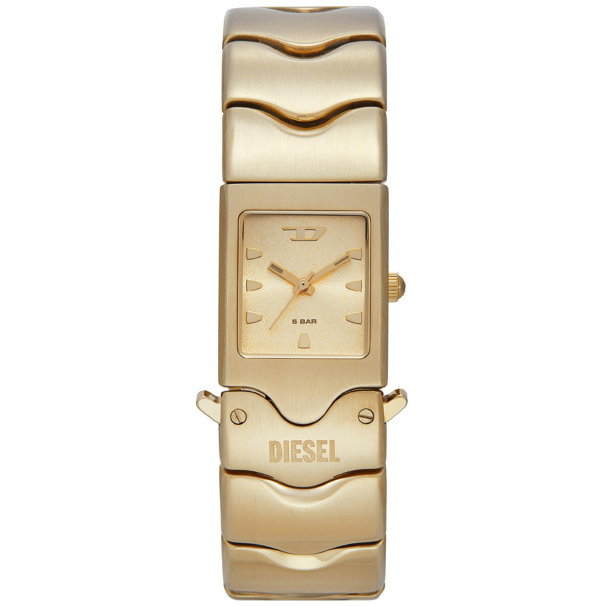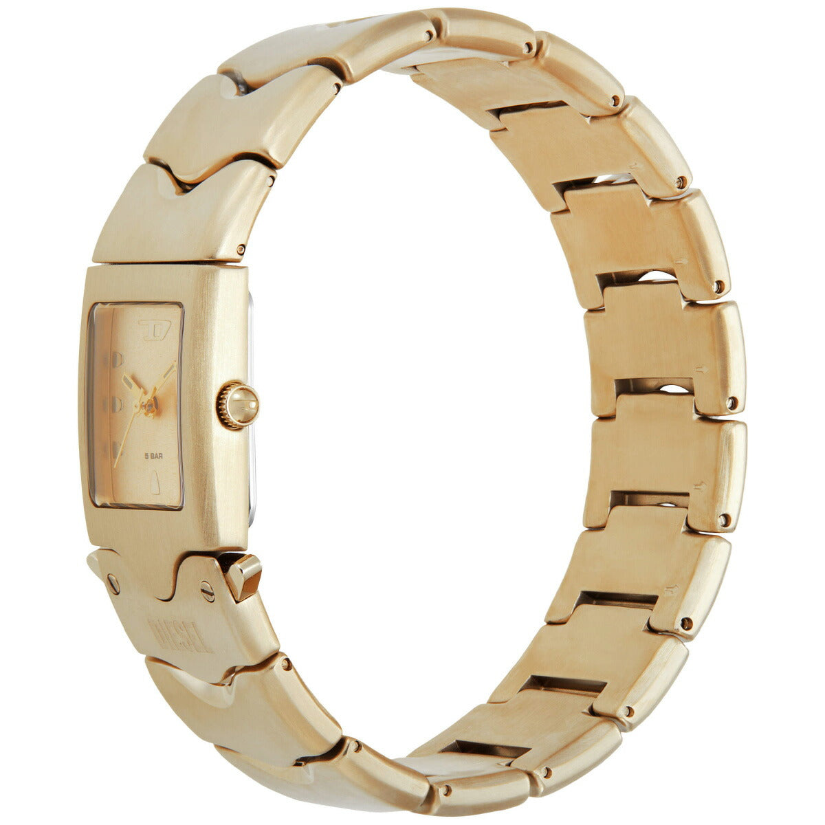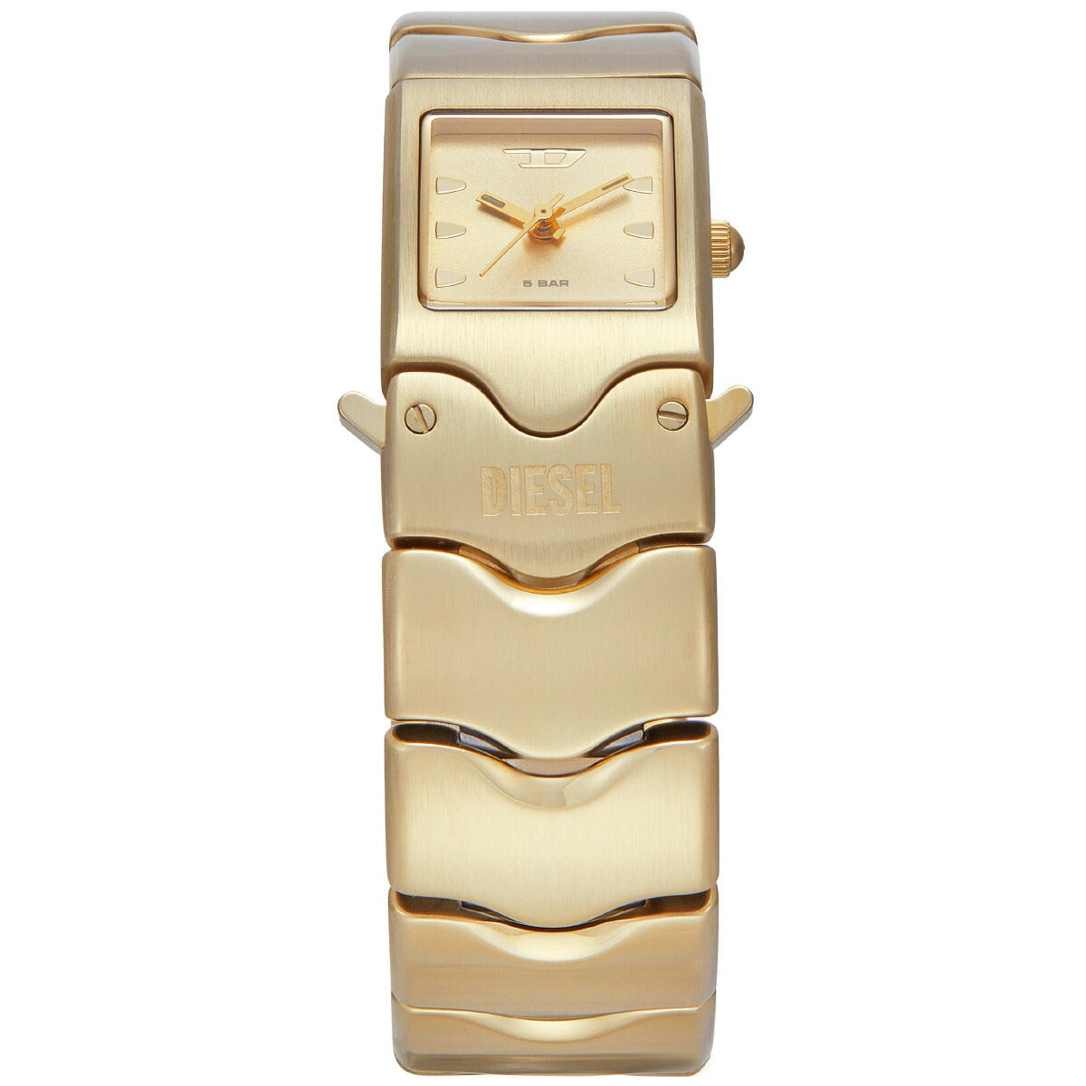 22mmのケースに三針ムーブメントを搭載したDieselのCLOSERウォッチ。ゴールドトーンのサンレイダイヤルに、ゴールドトーンのステンレススチールブレスレットを組み合わせました。バックル留め。