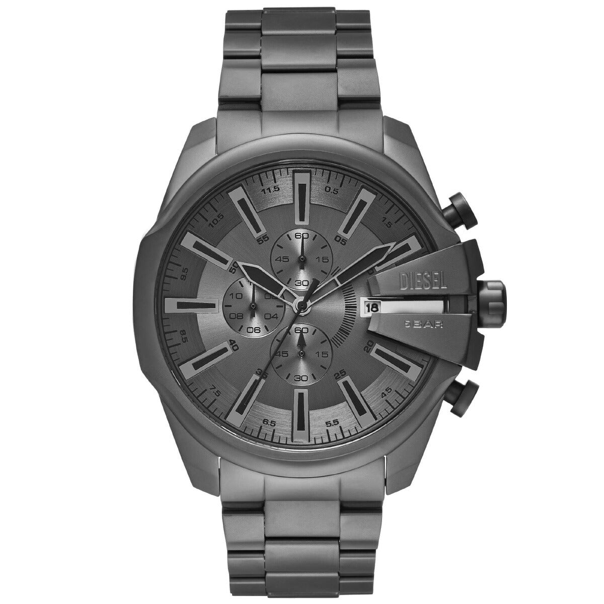 48mm径のケースにクロノグラフムーブメントを搭載したDieselのMEGA CHIEF SLIMウォッチ。グレーのサンレイダイヤルに、艶消し仕上げを施したグレーのステンレススチールのブレスレットを組み合わせました。