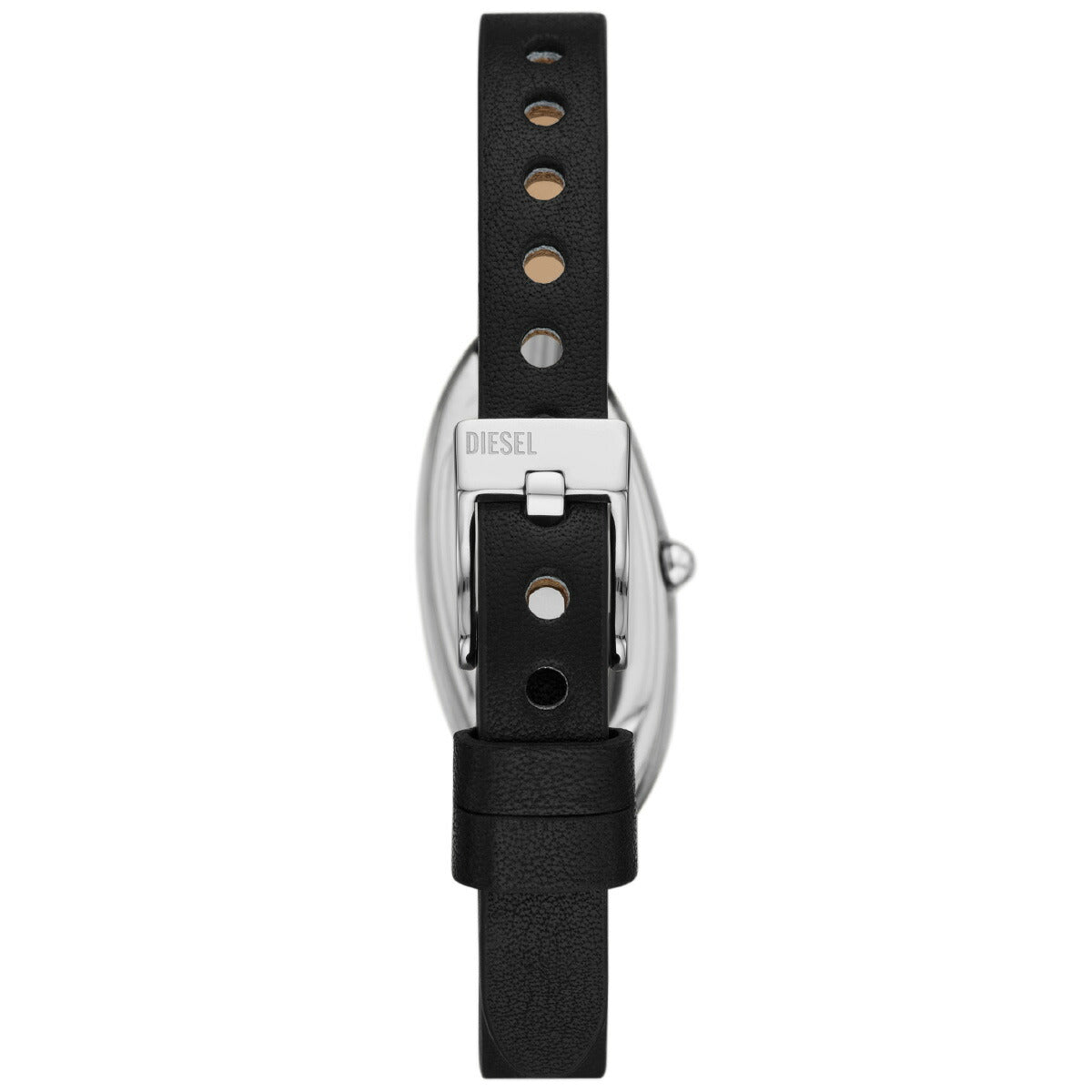 38mm径のケースに二針ムーブメントを搭載したDieselのD-ERAウォッチ。ブラックのダイヤルに、ブラックのレザーストラップを組み合わせました。