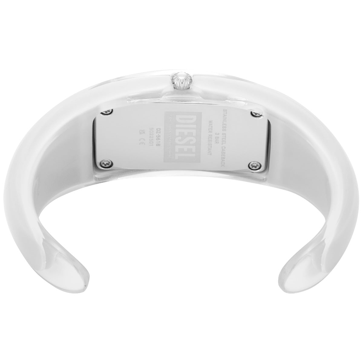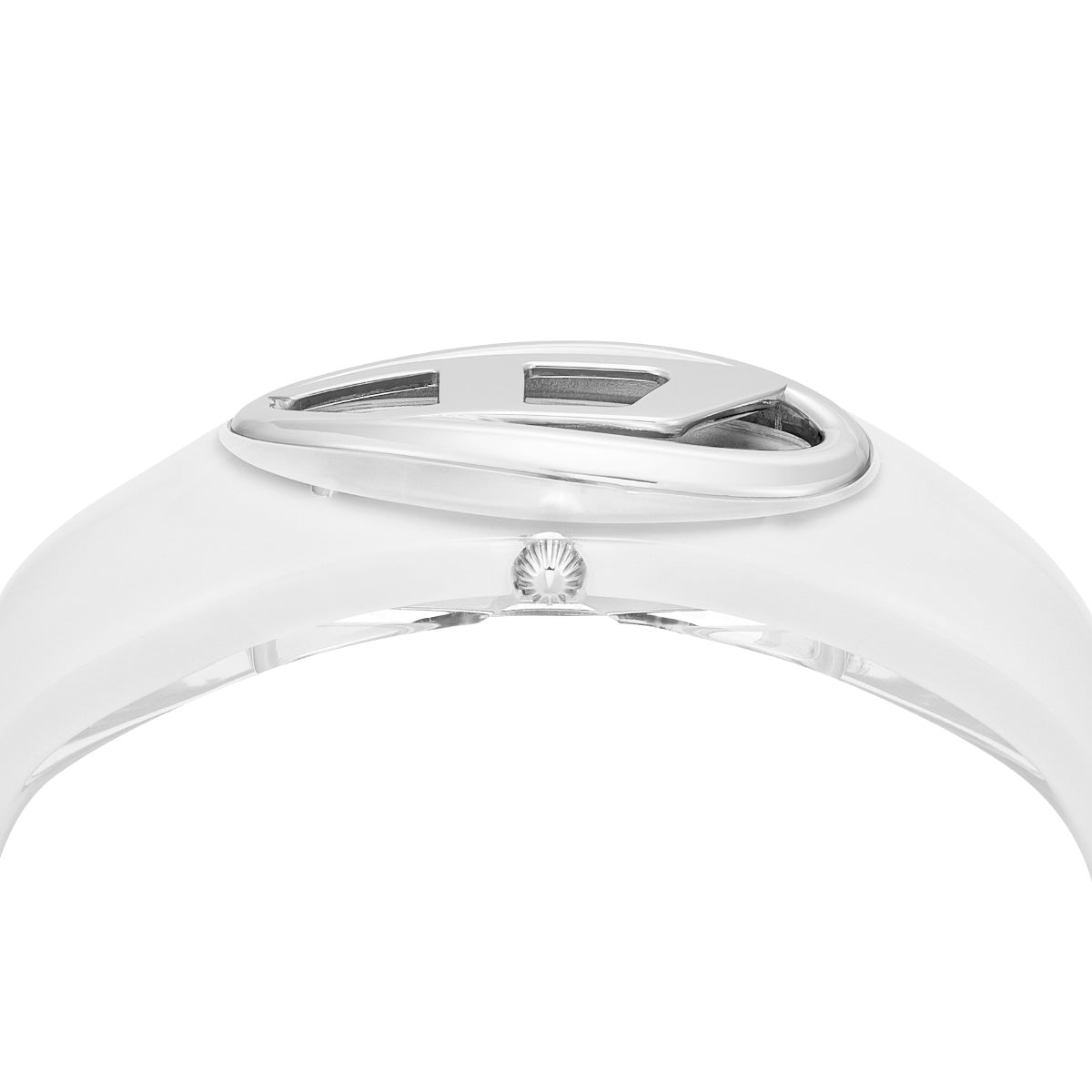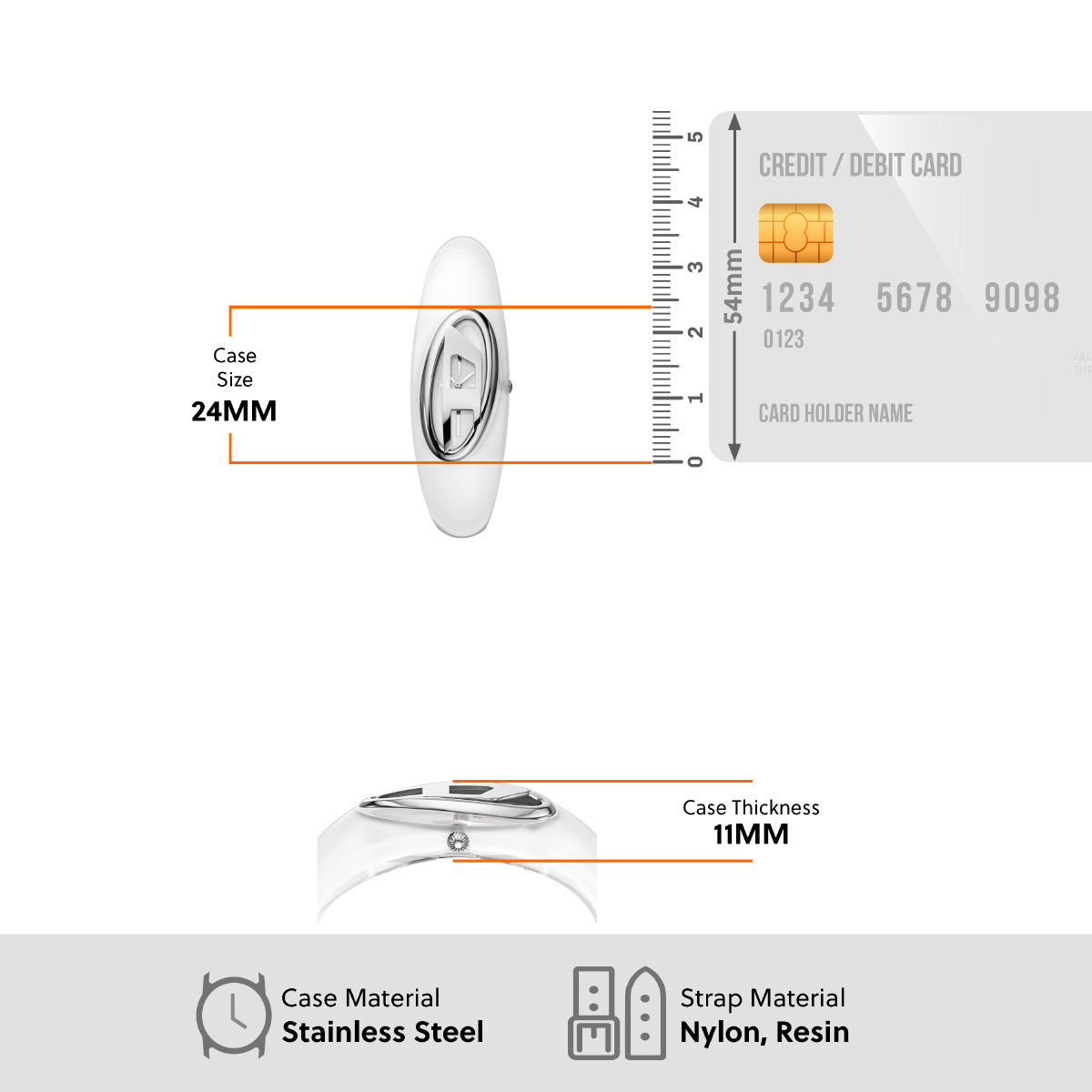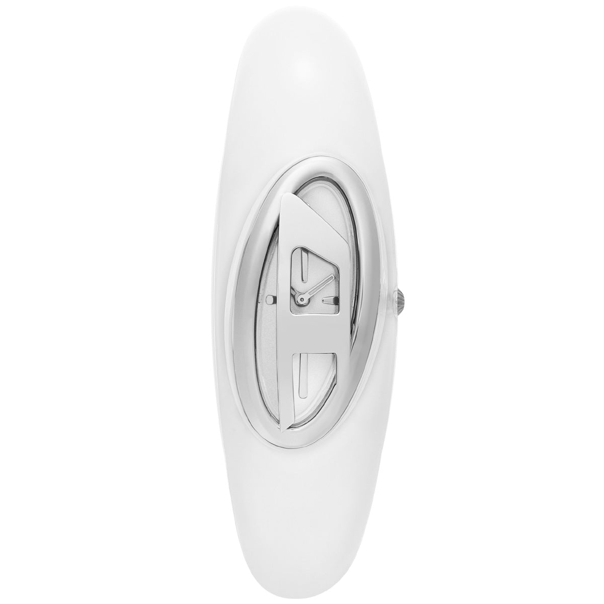 24mmのオーバルケースに二針ムーブメントを搭載したDieselのWONDER-Dウォッチ。ホワイトのサンレイダイヤルに、ホワイトのナイロンレジン製カフを組み合わせました。