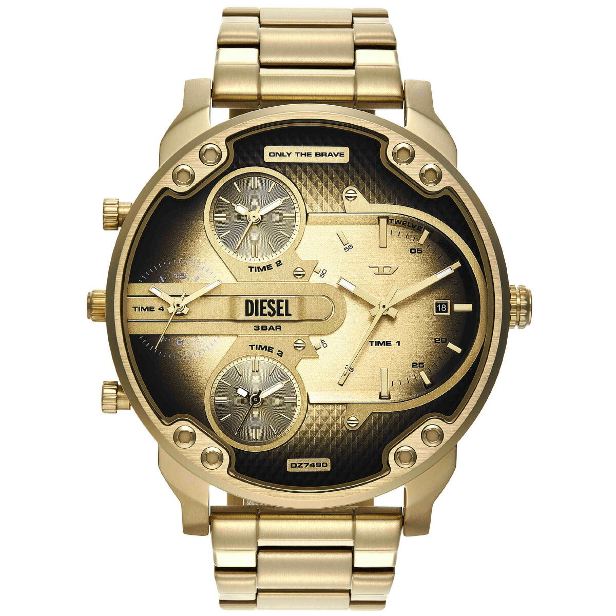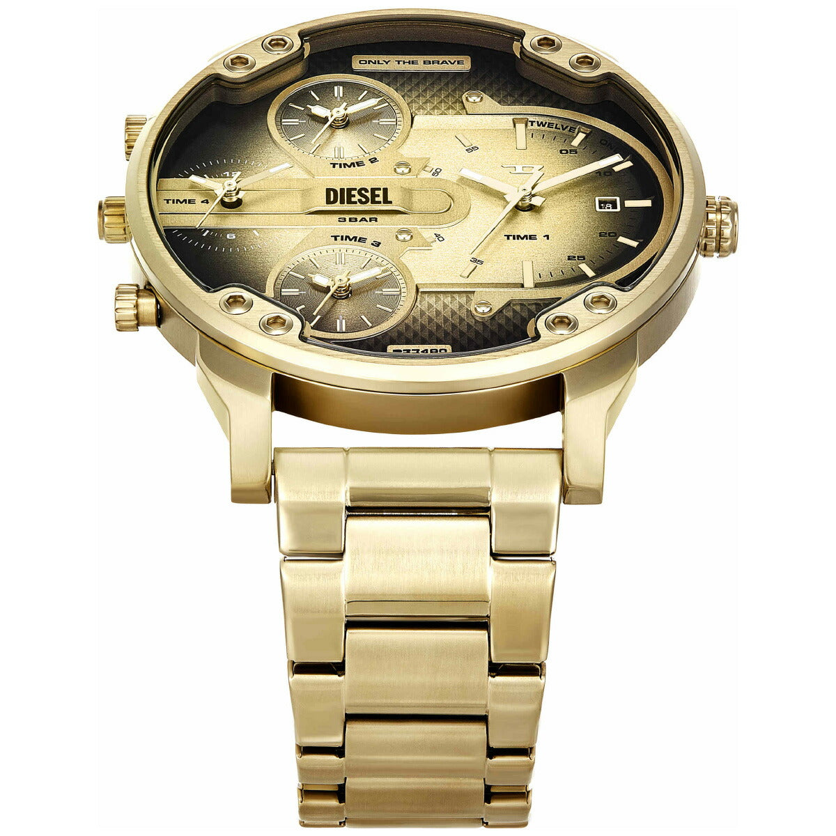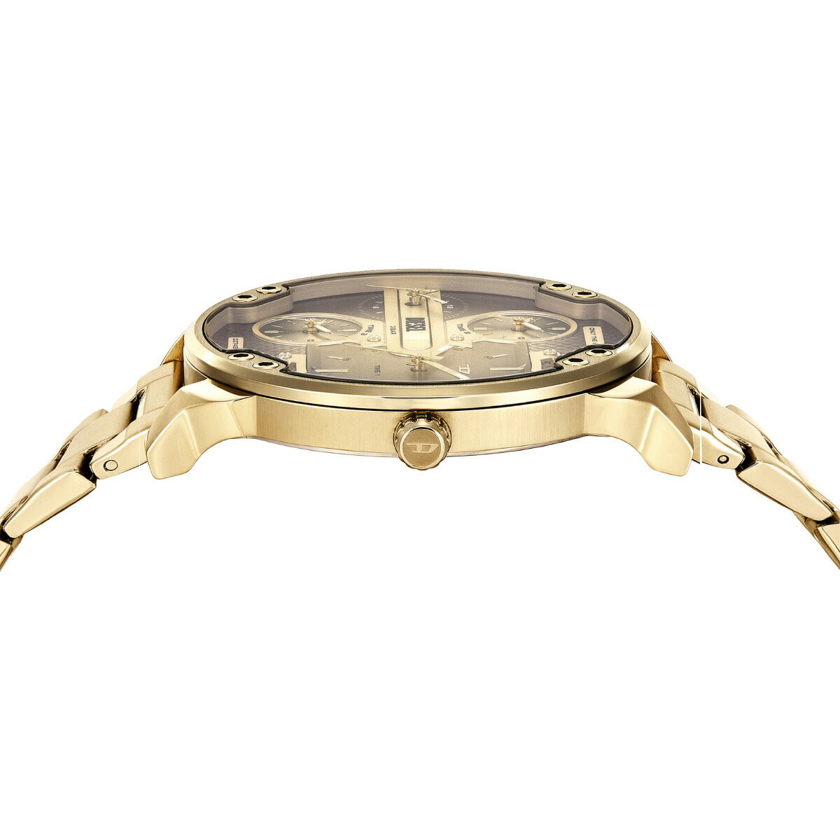 54mm径のケースにマルチムーブメントを搭載したDieselのMR. DADDY SLIMウォッチ。ブラック&ゴールドトーンのダイヤルに、ゴールドトーンのステンレススチールブレスレットを組み合わせました。