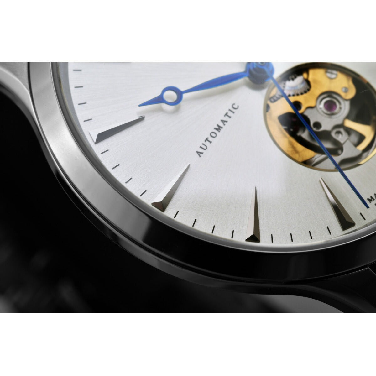 | ■ムーブ MIYOTA 90S5 ハイビート自動巻きオープンハート 秒針規制 28800振動 24石 日差0~+15秒(自社で調整) 駆動時間:約42時間 |