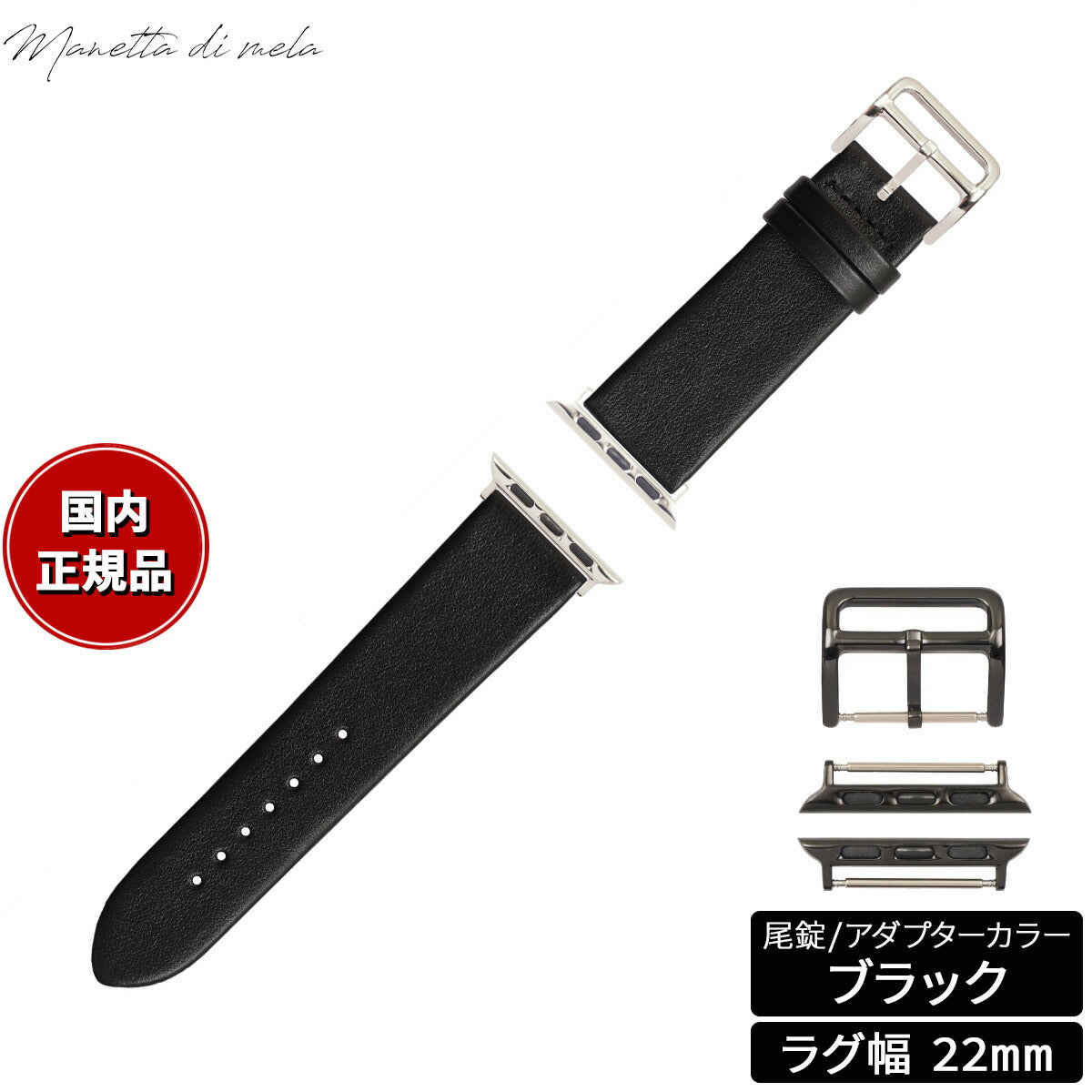 商品名 | マネッタ ディ メーラ Manetta di mela アップルウォッチ Apple Watch 替えバンド ベルト メンズ レディース トレソー イタリアレザー 22mm ジェットブラック/ブラック EFA-A-A22 |