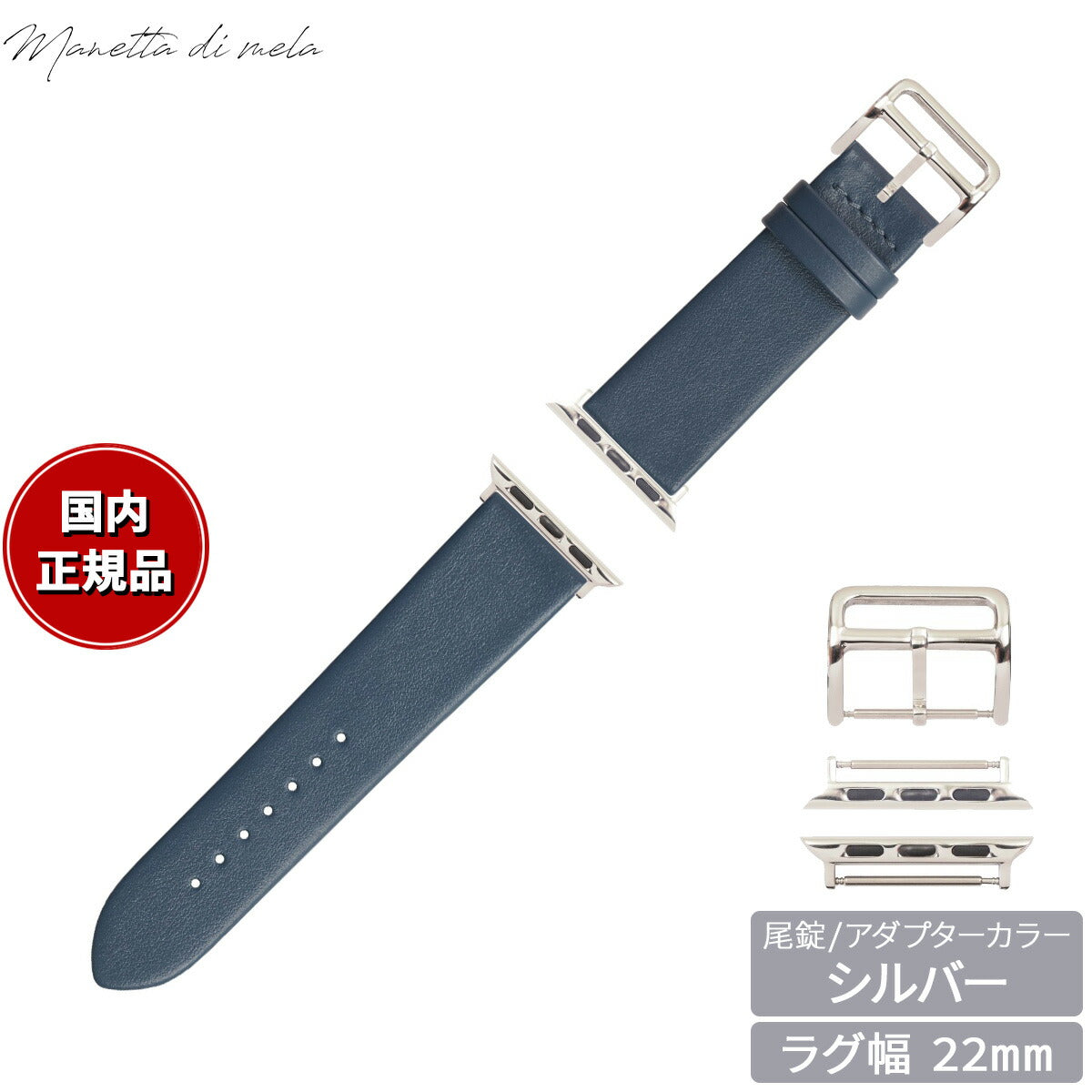マネッタ ディ メーラ Manetta di mela アップルウォッチ Apple Watch 替えバンド ベルト メンズ レディース トレソー イタリアレザー 22mm ブルーグレー/シルバー EFA-BL-S22