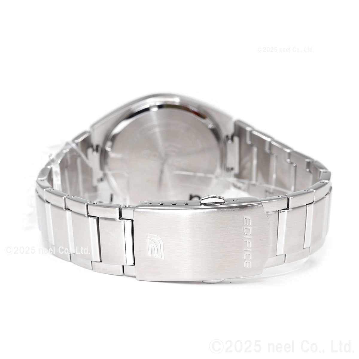 モータースポーツコンセプトのEDIFICEから、クラシックスポーツカーをイメージしてデザインした3針アナログモデルです。クラシックな印象のラウンド形状のステンレススチールケースとミラー仕上げの細身のベゼルが個性的です。ケースには放射状に筋目が入り硬質感を演出します。EFB-109DJ-2AJFの青文字板は中心から放射状に細かな線が広がるサンレイ仕上げを施しています。サファイアガラス、ステンレススチールケース、無垢のステンレススチールバンドのクラシックでスポーティな10気圧防水モデルです。カジュアルからビジネスまで、幅広いシーンで個性を主張できるデザインです。
