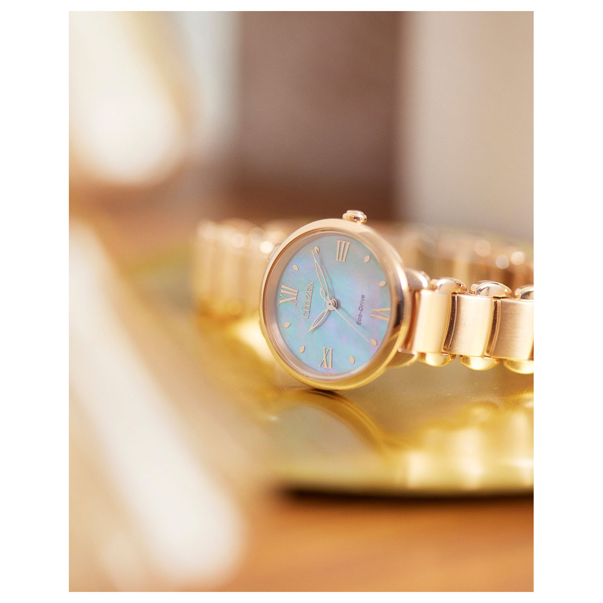地球のように美しいサステナブルウオッチ、CITIZEN L(シチズン エル)。咲き誇るダリアの花にインスパイアされた優雅なシルエット、上品で華やかなデザインが魅力のモデルが登場。デザインのモチーフは、優しさ、明るさ、華やかさで見る人の心を惹きつけるダリアの花。シンプルでありながらも流れるように優雅なシルエットが美しい存在感を放ちます。文字板は、淡く色づいた白蝶貝を採用。花びらのようなシルエットのインデックスと開花を想起させ、伸びやかに広がるローマ字フォントを採用した上品で華やかなデザインです。それぞれダリアの花言葉にあわせたイメージを演出しています。