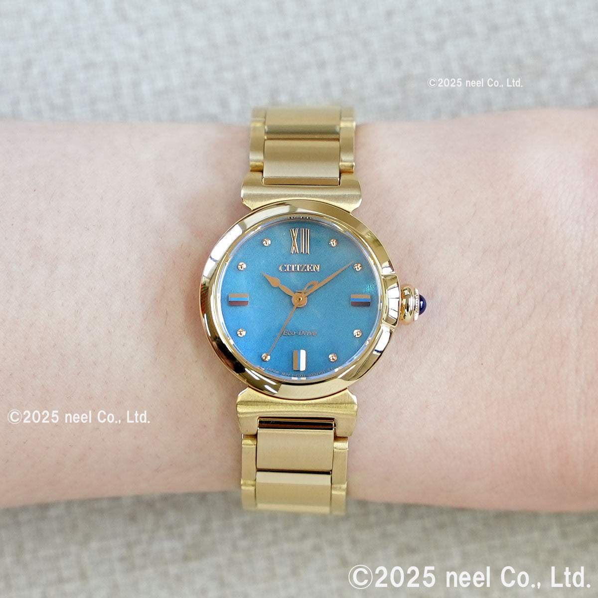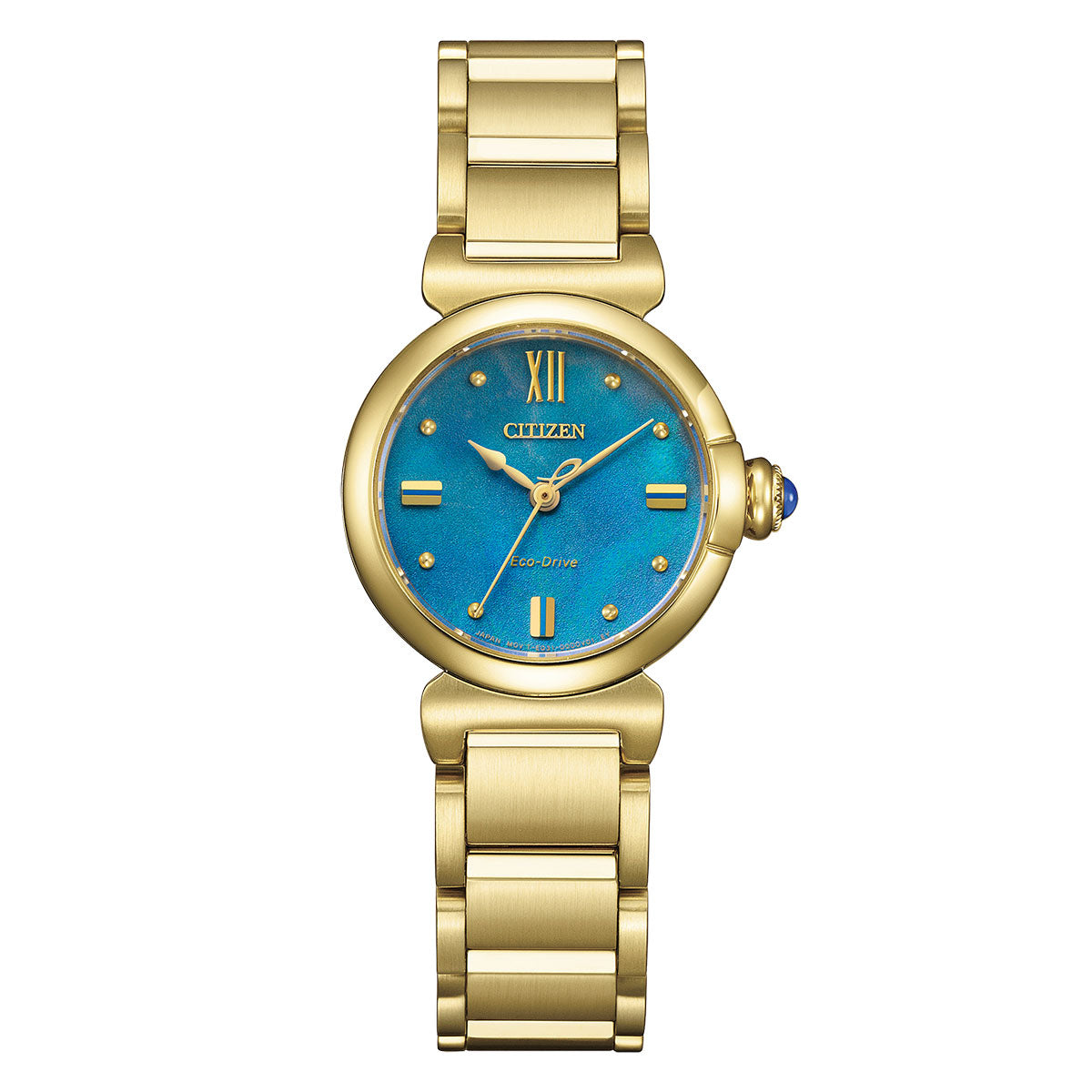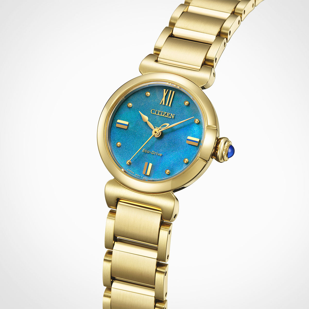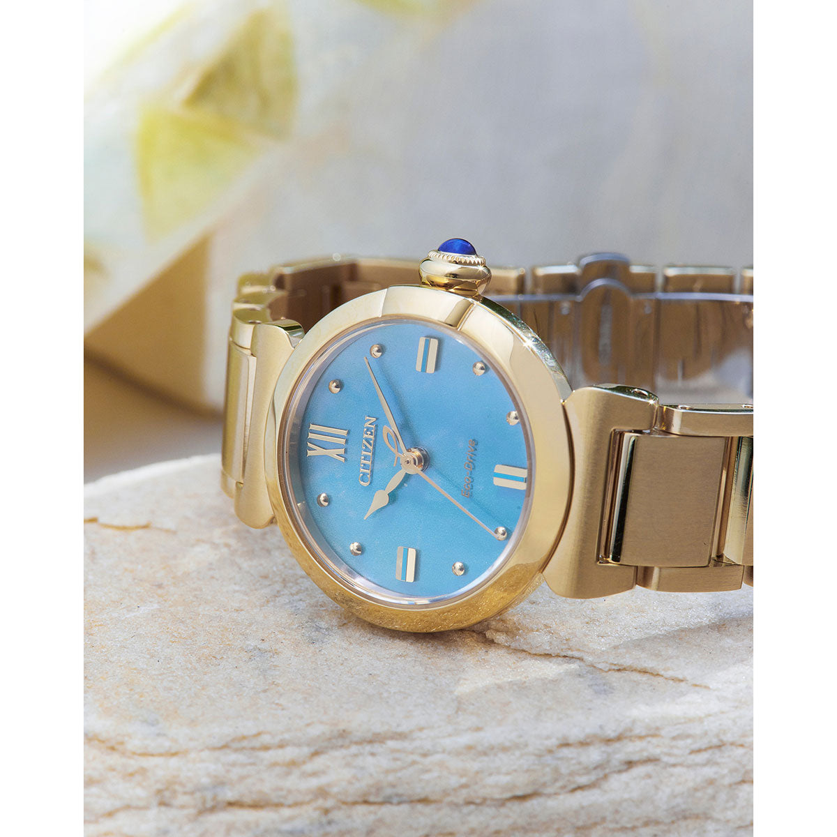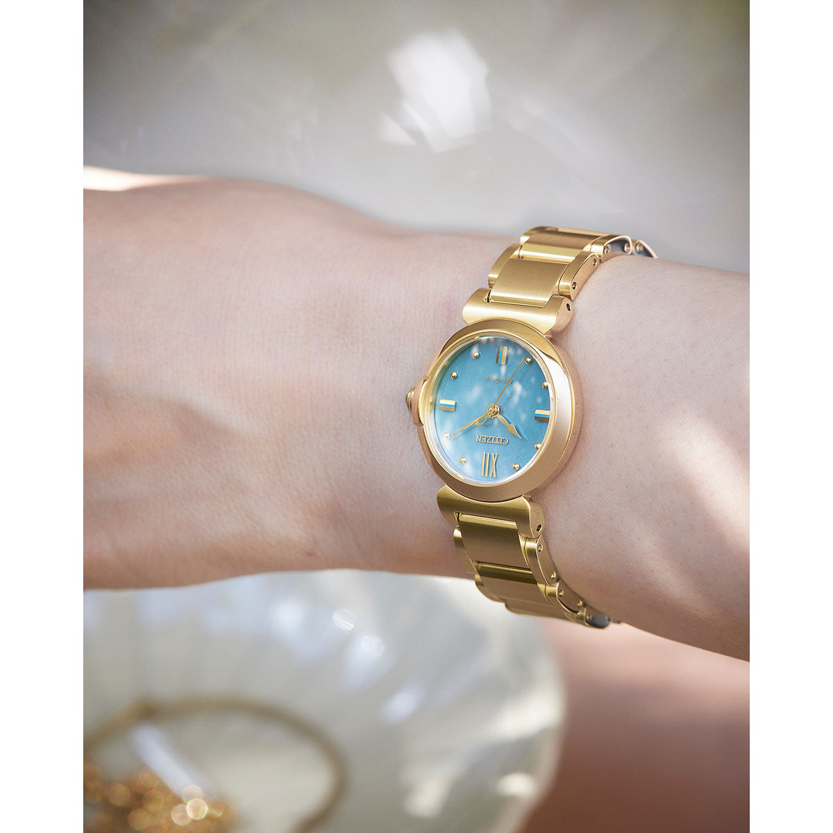 地球のように美しいサステナブルウオッチ、 CITIZEN L(シチズン エル)。アンティーク風のテイストを生かしたライトゴールドのケース、太陽のもとで揺らめく海面を思わせるブルーの文字板。生命力あふれる美しい水(AQUA)を表現した「ROUND Collection」限定モデルです。