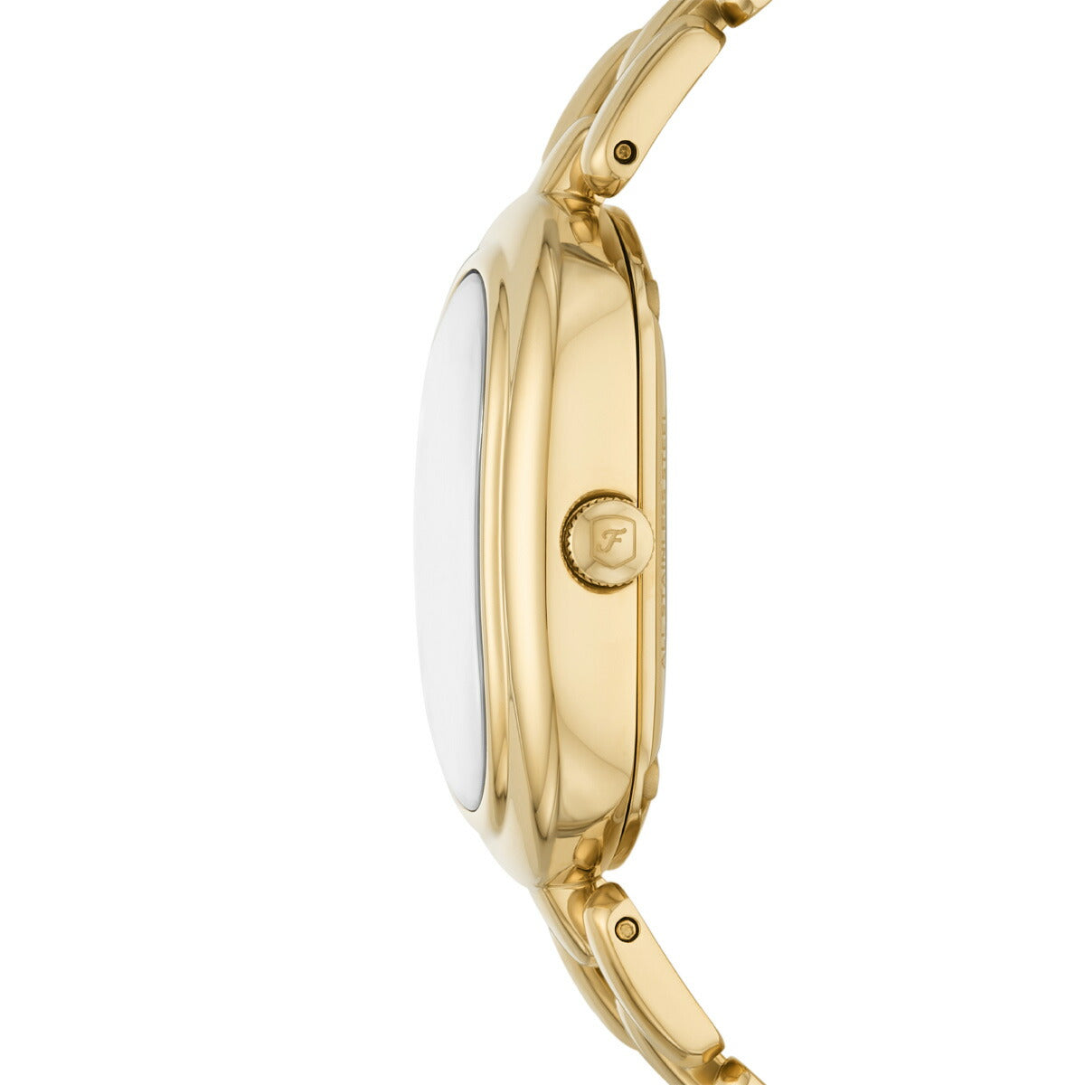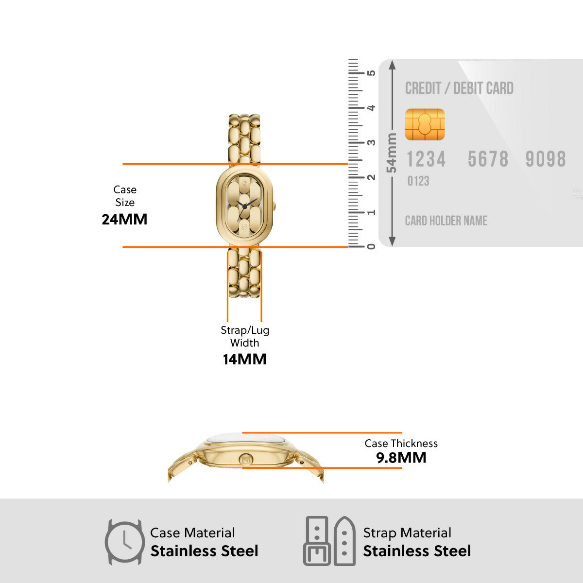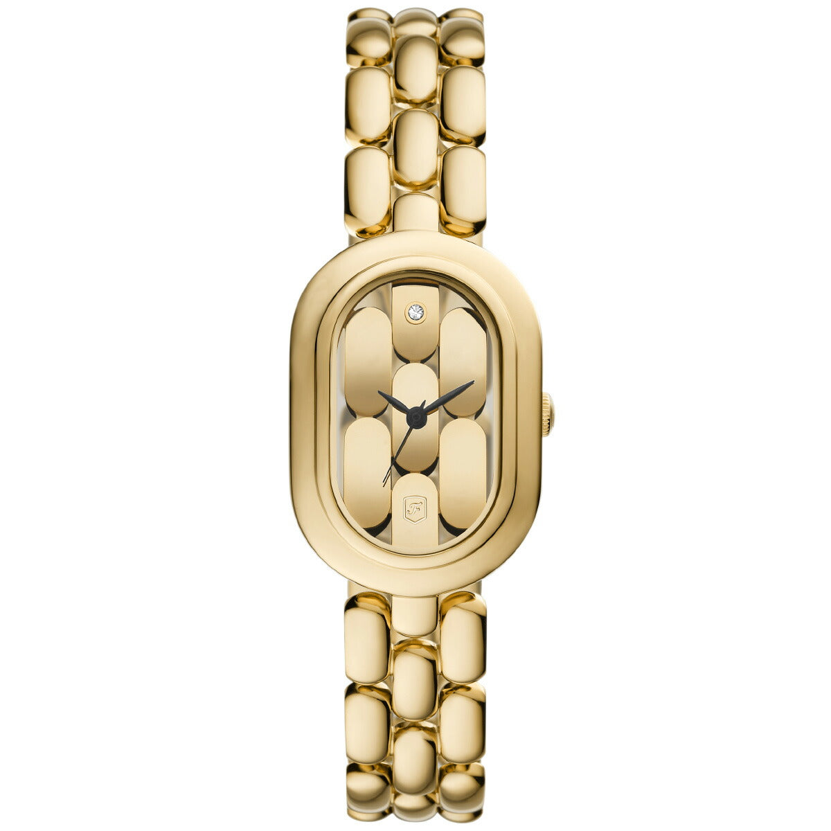ジュエリーとウォッチの機能性が見事に融合したFossilの最新プラットフォーム。各ウォッチのスケルトンダイヤルは、時計職人によって手作業で取り付けられています。この卓越したクラフトマンシップが、リンクがオーバル型のケースを通り抜けているような錯覚を生み出しています。12時の位置にあしらったクリスタルが映えるデザインです。