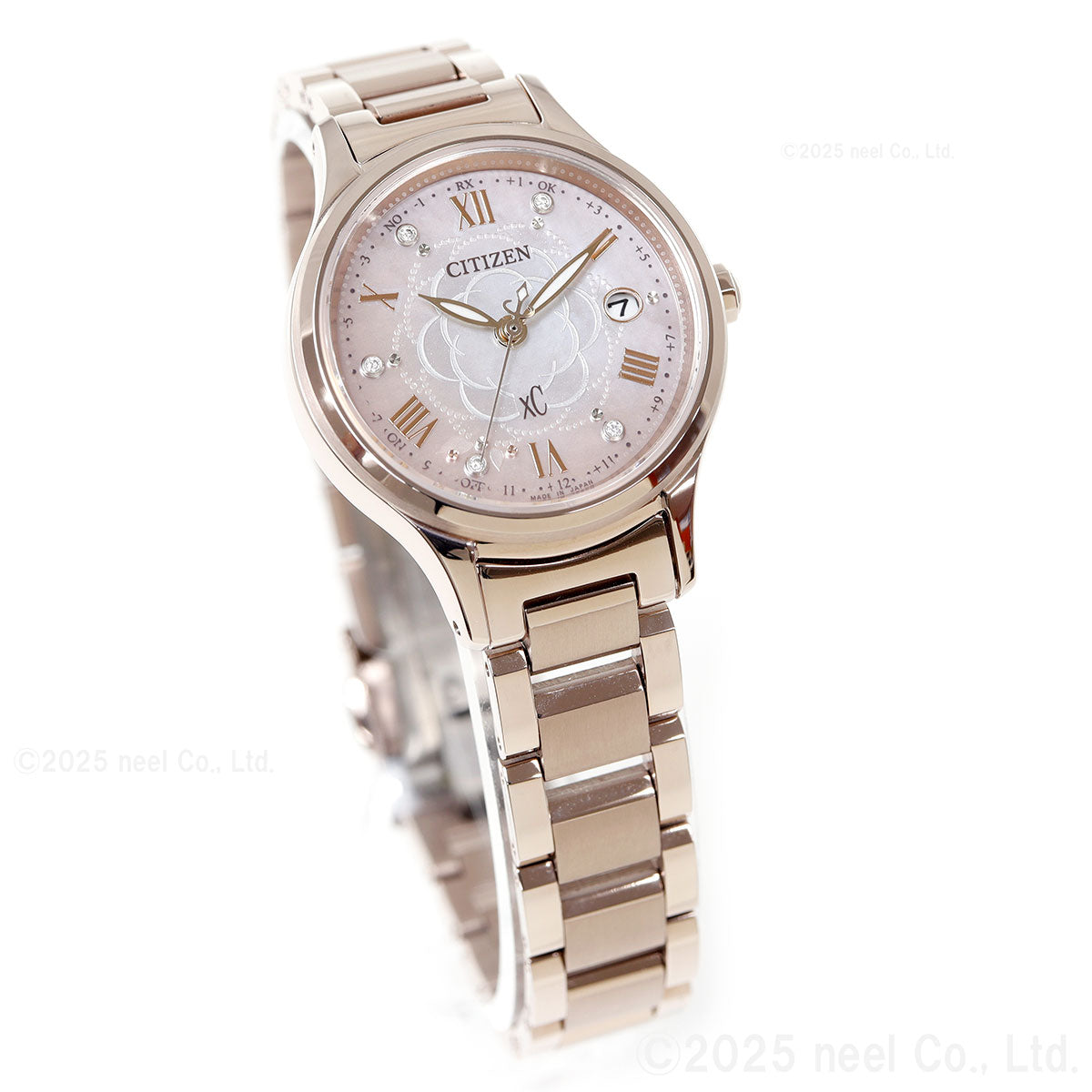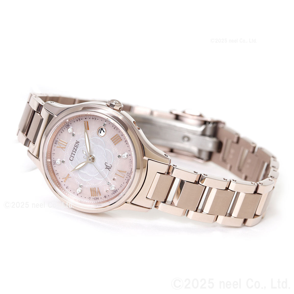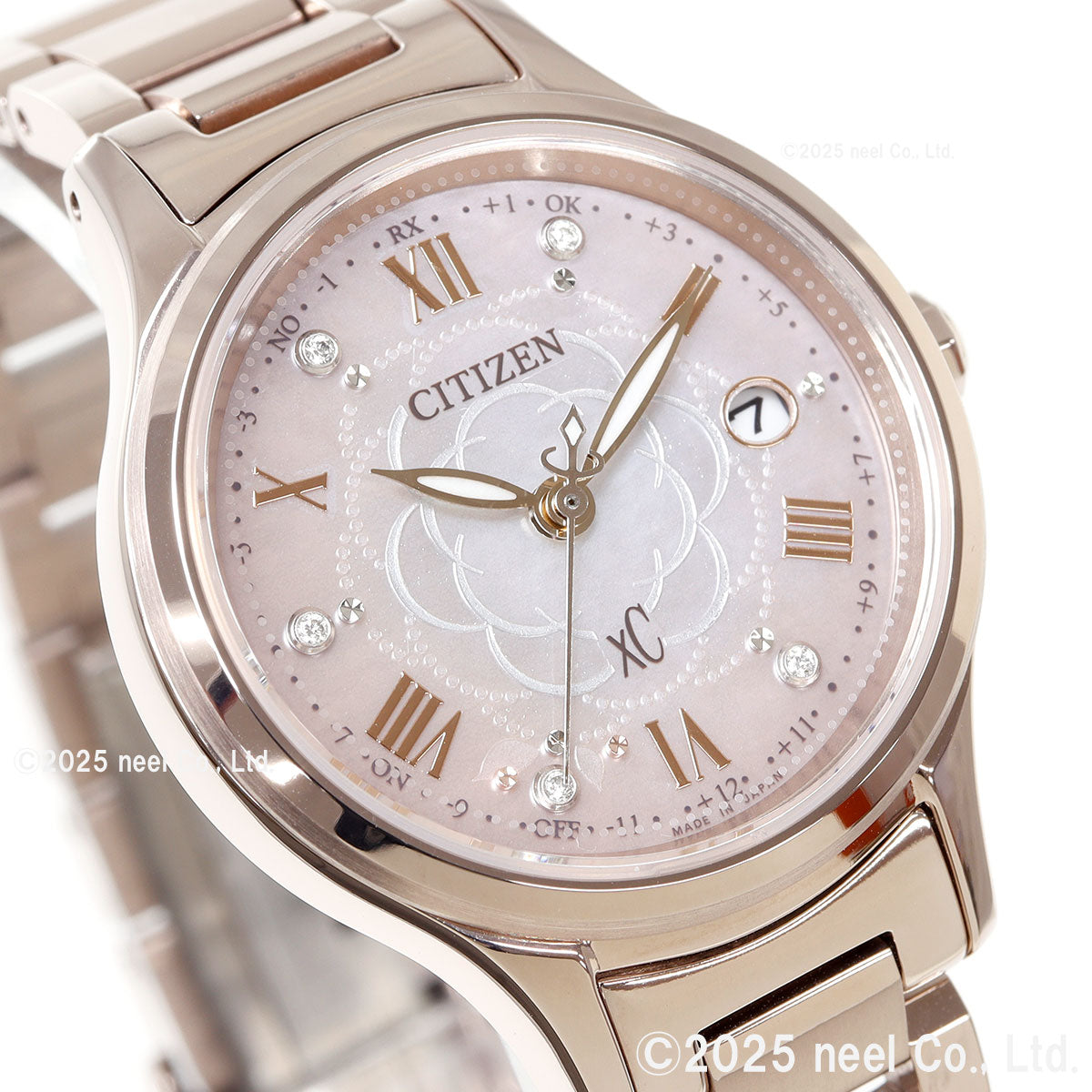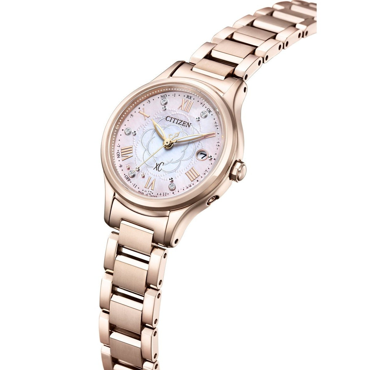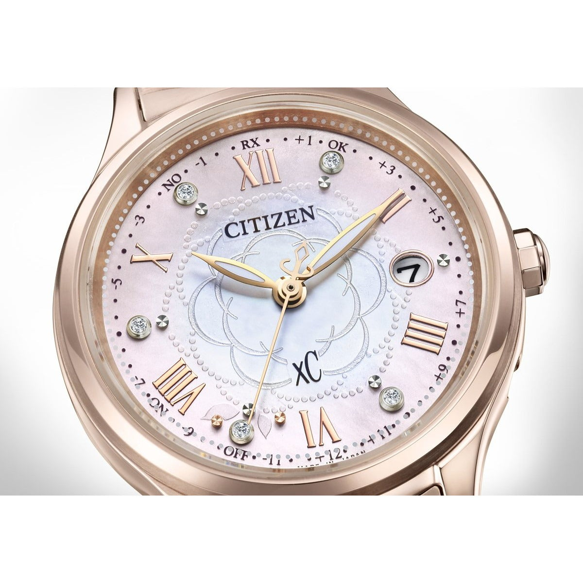 前を向く女性を応援するエンパワーウオッチブランド、シチズン xC(クロスシー)。咲き誇るカメリア(椿)の花びらに降り注ぐ、光の粒を描いた文字板。上品な華やかさと可愛らしさが魅力の「hikari collection」限定モデルです。満開の美しいカメリア(椿)をモチーフにしたデザイン。白蝶貝文字板にエッチングのパターンでカメリアの花を描き、“光の粒”が花びらに乗っているかのようなドットパターンを組み合わせて愛らしさを表現しました。文字板の外周を彩るピンクのグラデーションが、カメリアが持つ華やかさと可愛らしさをきわだたせています。文字板のインデックスには5ポイントのラボグロウン・ダイヤモンドとカットパーツをセッティング。腕元を彩る華やかなデザインに仕上げました。