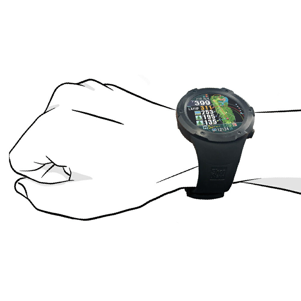 腕時計型ゴルフナビ最大サイズ1.4インチ・タッチパネル液晶ディスプレイ。Dynamic Green Eye、3点間距離計測、ピンポジ登録、パットシミュレーション、リバース表示、フェアウェイナビ(特許取得)、オートメジャー、オートビューチェンジ、グリーンディレクション、レイアップ機能搭載。MIPカラー反射型液晶。高精度測位みちびきL1S対応。腕時計型GPSゴルフナビ。日本プロゴルフ協会推薦品。国内100%&海外のゴルフ場に対応。