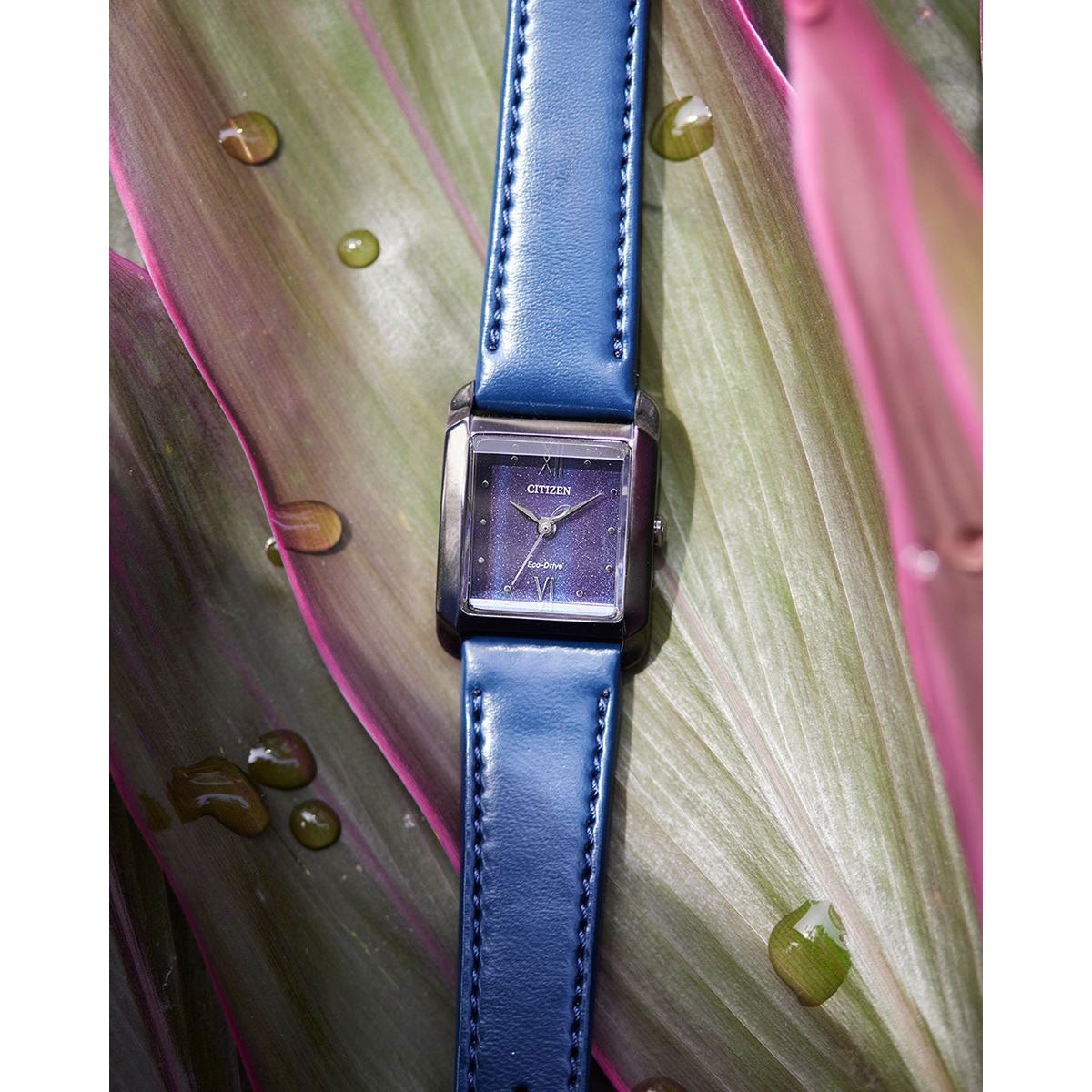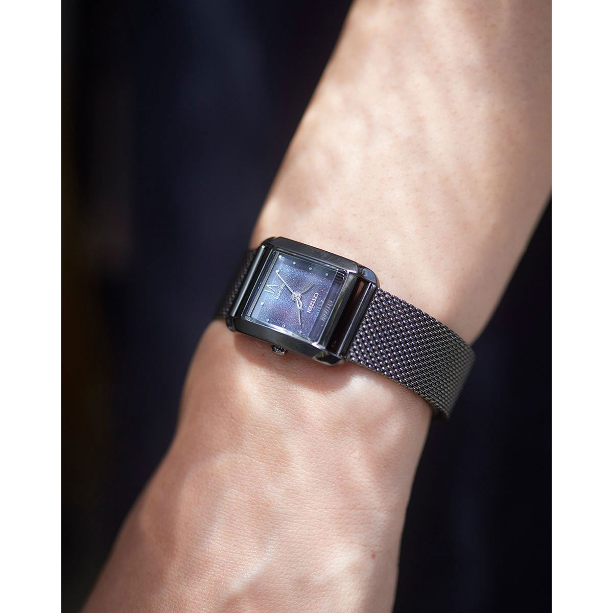 地球のように美しいサステナブルウオッチ、CITIZEN L(シチズン エル)。ストライプとラメで、光の揺らぎを表現した深みのある文字板。モダンでエレガントなスクエアシェイプのモデルに、サステナブルな素材を使った替えバンド付きの新作が登場。大胆なカットを施したカーブサファイアガラスと、やや丸みをおびたケースラインが、女性のしなやかさと芯の強さを感じさせます。文字板は「光の揺らぎ」をテーマにデザイン。ストライプのパターンとラメの煌めきが、深みのある美しさを演出しています。メッシュバンドに加え、サステナブルな素材「ECOPETR(R)」を使用した替えバンド付き。レバー付きばね棒仕様なので、その日の気分やファッションに合わせて自分で手軽にバンドの付替ができます。