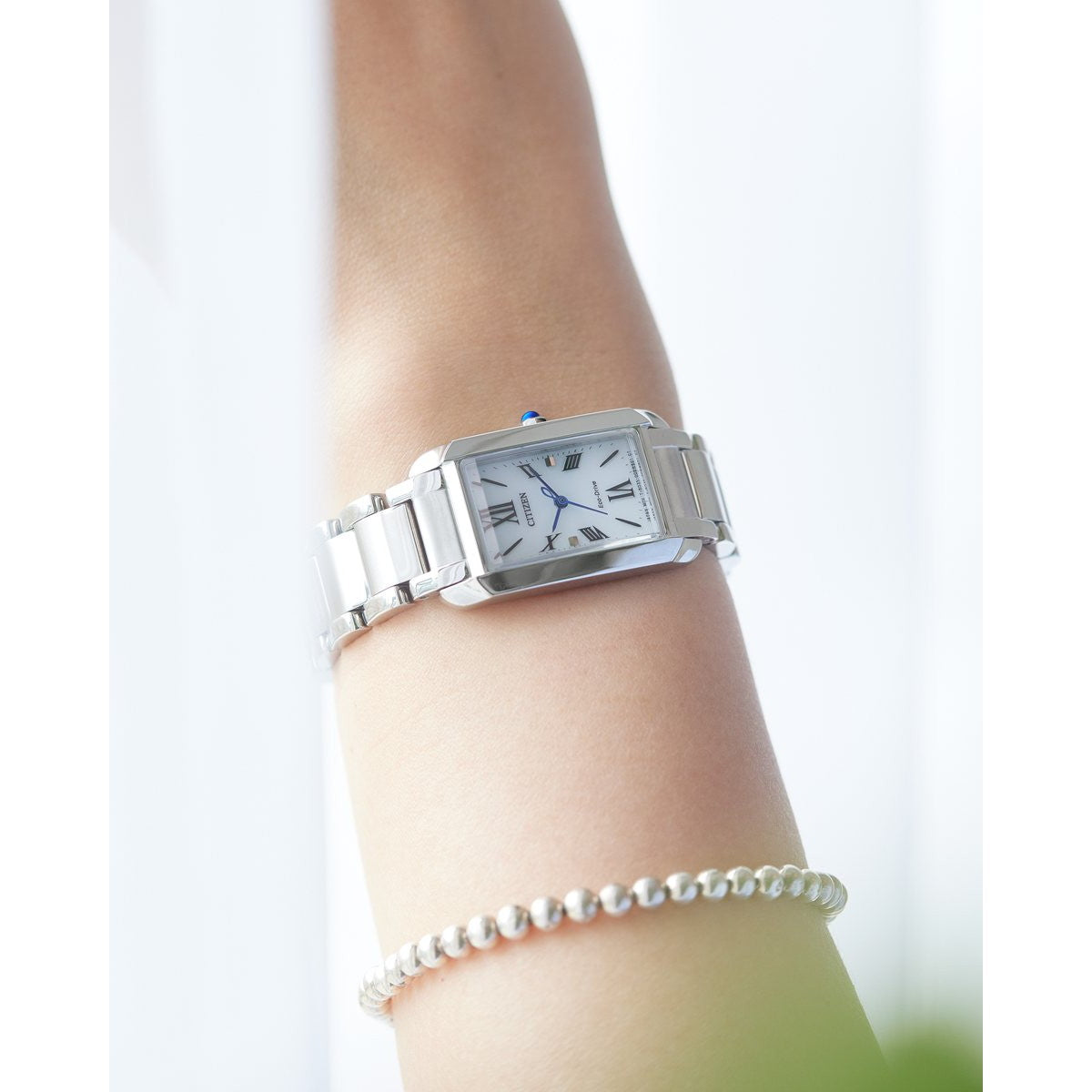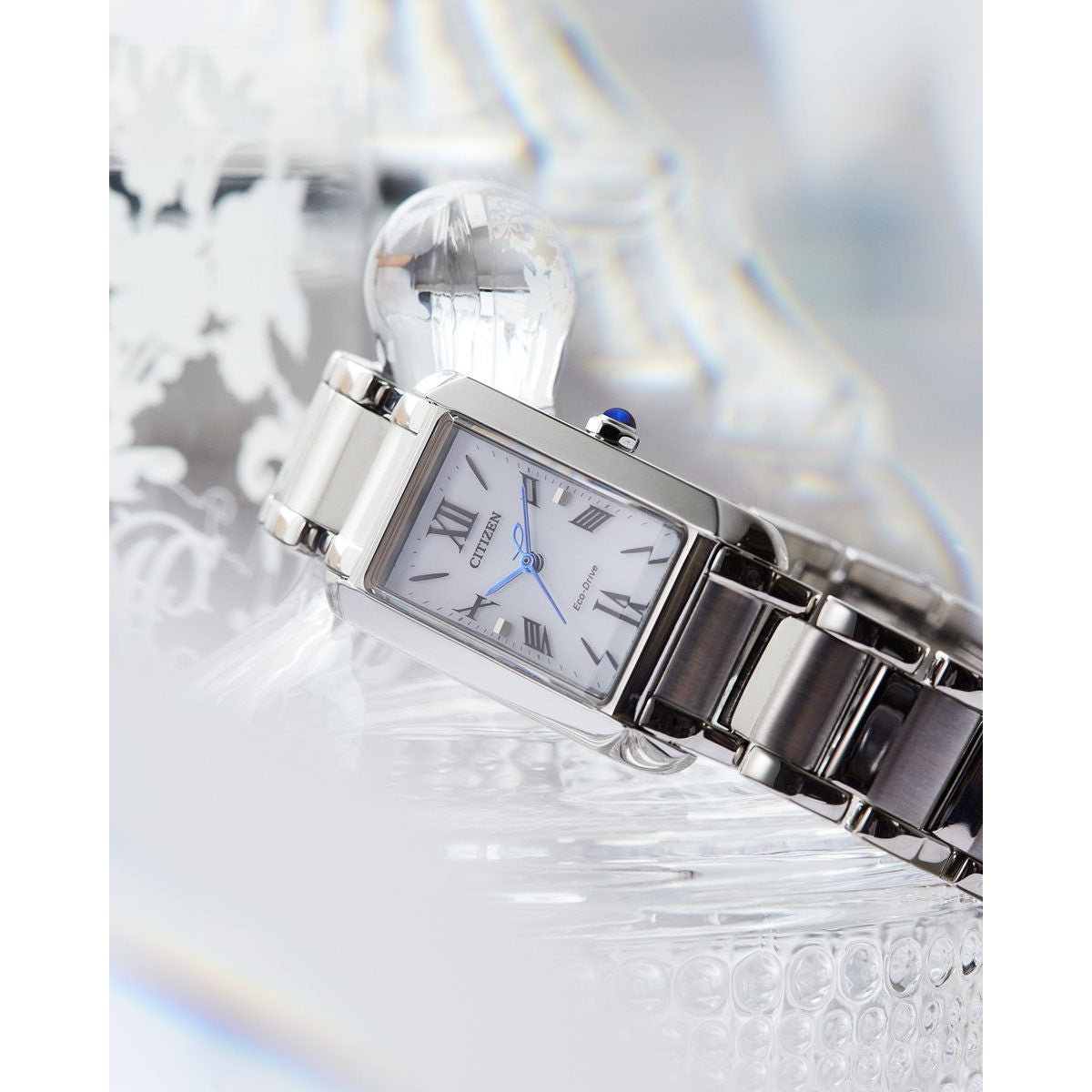 地球のように美しいサステナブルウオッチ、CITIZEN L(シチズン エル)。人気の「SQUARE Collection」に長角ケースモデルが登場。海と陸をつなぐ境界線“岸辺”にインスピレーションを得たエレガントなデザインです。豊かな生命の宝庫であり、生態系の境界でもある“岸辺”に着想を得た、エレガントなデザインです。ダイナミックなラインと柔らかな稜線を生かしたケースが、ラグジュアリーな佇まいの中に、繊細な雰囲気を漂わせています。凜とした表情のローマ数字インデックスを採用。斜めにカットされたガラスが豊かな光の反射を生み出し、りゅうずには、地球の美しさを象徴するブルーポイントをあしらいました。