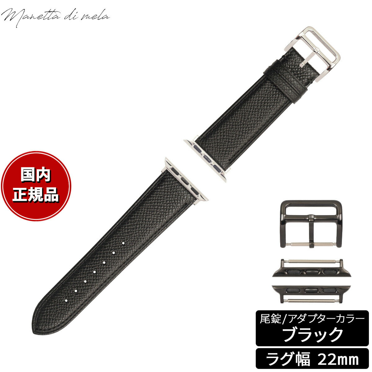 マネッタ ディ メーラ Manetta di mela アップルウォッチ Apple Watch 替えバンド ベルト メンズ レディース ワープロラックス カーフレザー 22mm クロームブラック/ブラック EWB-A-A22