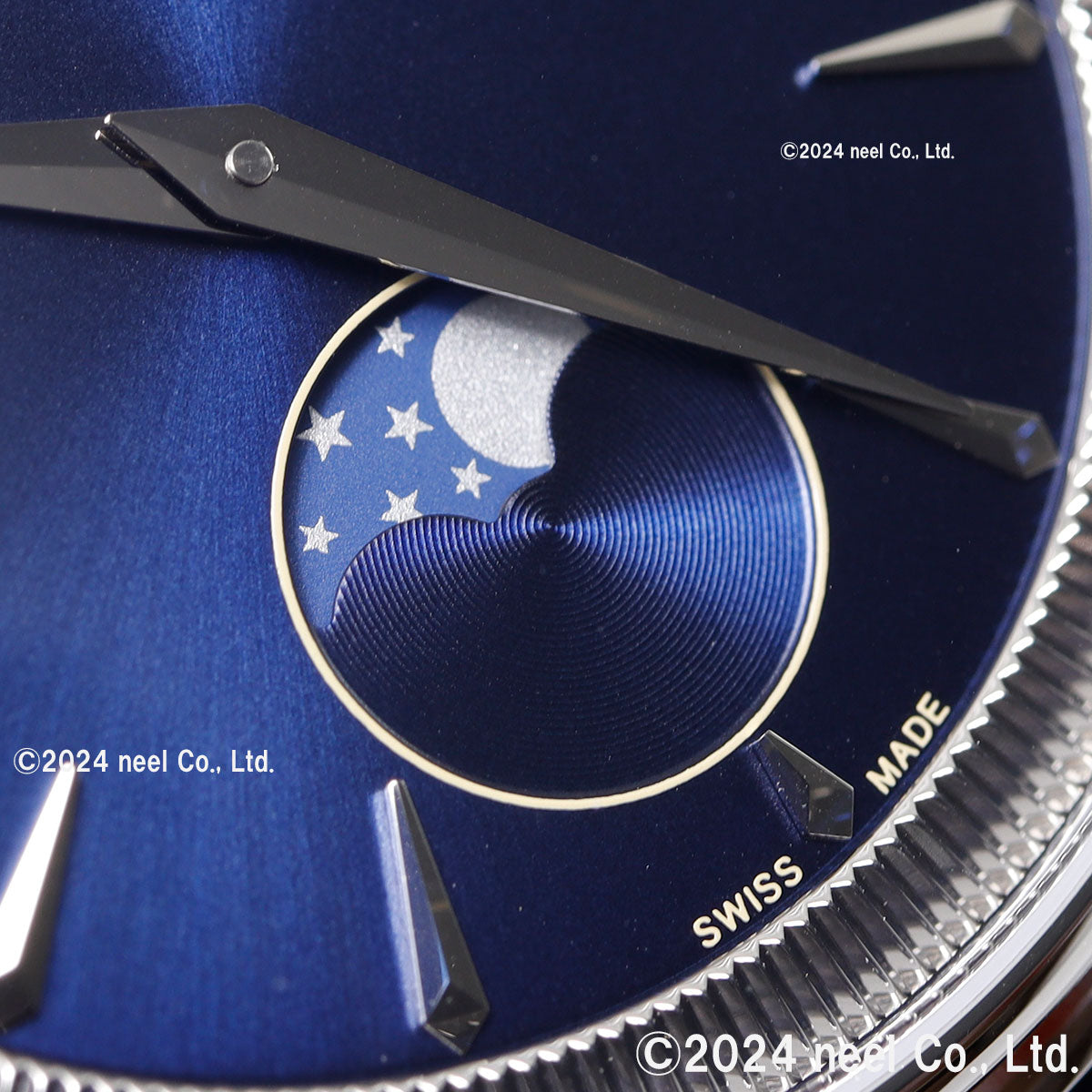 ムーンフェイズを搭載した2針のクォーツモデル「クラシック モネータ ムーンフェイズ」。文字盤のフランジに施した伝統的な硬貨模様(コインエッジ)がコレクション名の由来です。37mmの小振りなケースに、ソレイユ仕上げの文字盤。スリムな楔型アプライドインデックス、手仕上げのドルフィン針とムーンフェイズを配したクラシカルながらも個性的な時計です。リューズ一つで全ての調整が可能です。