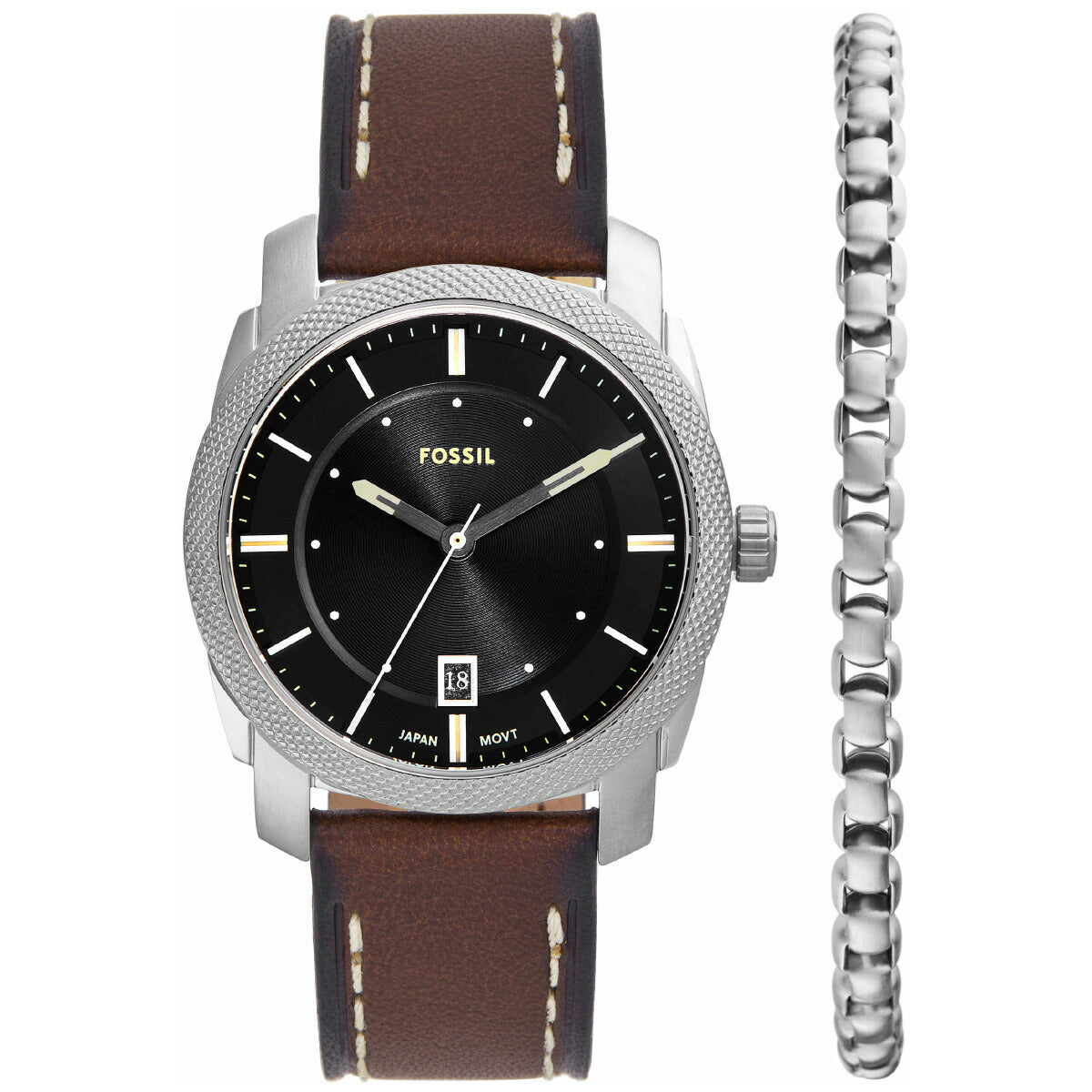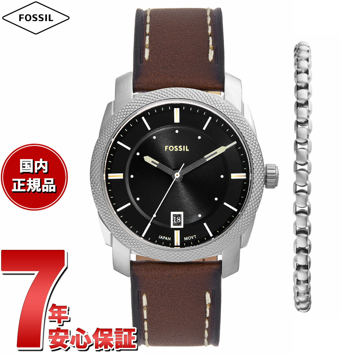 フォッシル FOSSIL 腕時計 メンズ MACHINE 三針デイト ブラウン レザー ウォッチ&ブレスレットセット FS6081SET
